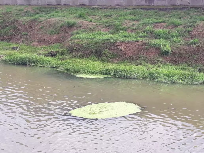 Em alguns pontos do rio Itajaí-Mirim na avenida Bepe Roza, a Beira Rio, é possível visualizar uma coloração esverdeada, principalmente em locais onde não possuem muita correnteza.