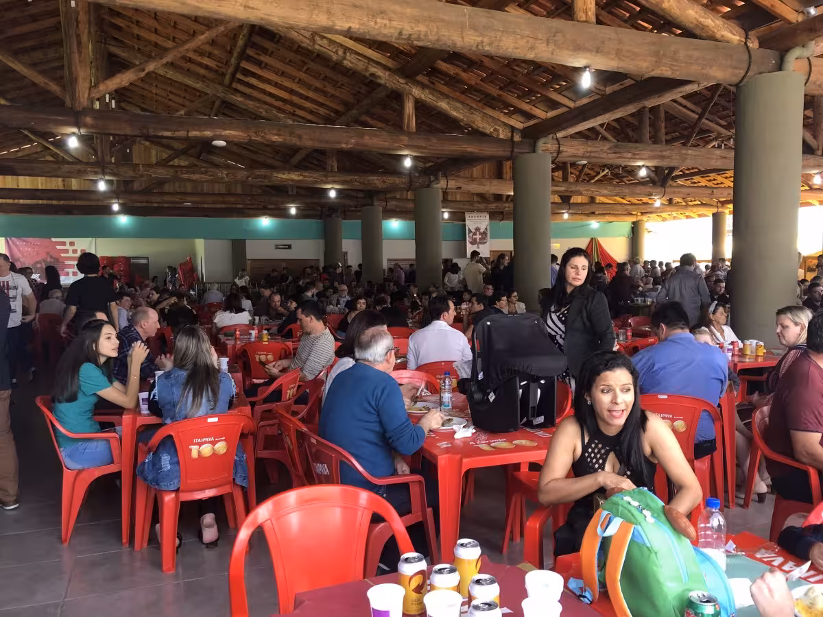 Já no domingo, a programação da festa iniciou logo cedo, com a celebração da missa, seguida de almoço. Mais de 700 pessoas puderam saborear os pratos de comida italiana, como o macarrão, polenta, mandioca, e galinha caipira ensopada.