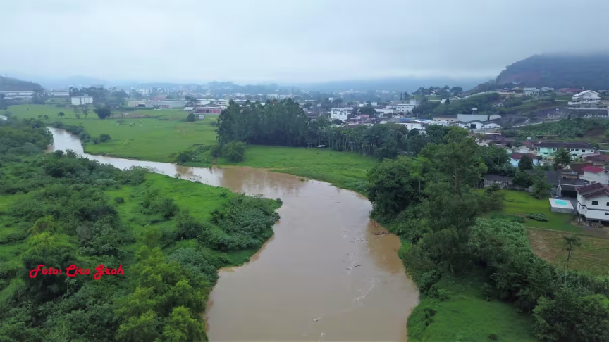 Aqui no Vale do Itajaí Mirim, várias localidades tiveram eventos de chuva forte num curto espaço de tempo, a citar como exemplo, Tirivas em Presidente Nereu, no Alto Vale, com 66,3 mm no dia de ontem. Outro município com alto volume de precipitação foi Botuverá, onde na localidade de Ourinhos choveu 45,5 mm, sendo que deste total, 37,1 mm em 40 minutos no início da noite deste domingo, dados de minhas estações. Já Brusque não registrou chuva excepcional, meus equipamentos de monitoramento coletaram valores considerados dentro de uma normalidade, por serem bem distribuídos ao longo do dia. Os bairros com maiores volumes foram o Centro e Rio Branco, com 25,4 mm e 24,4 mm respectivamente. Apesar de toda esta situação que observamos ontem, envolvendo eventos de precipitação com altos acumulados, principalmente em pontos do Alto Vale, o rio Itajaí Mirim se apresenta hoje com situação dentro de uma normalidade em Brusque, visto que os temporais relatados aqui anteriormente não ocorreram de forma generalizada. Seu nível às 07h45min da manhã desta segunda-feira,14, estava em 2,43m, dados da ANA (Agência Nacional de Águas via Defesa Civil de Brusque).