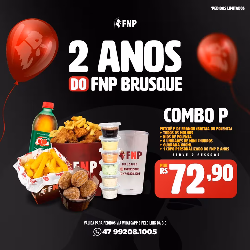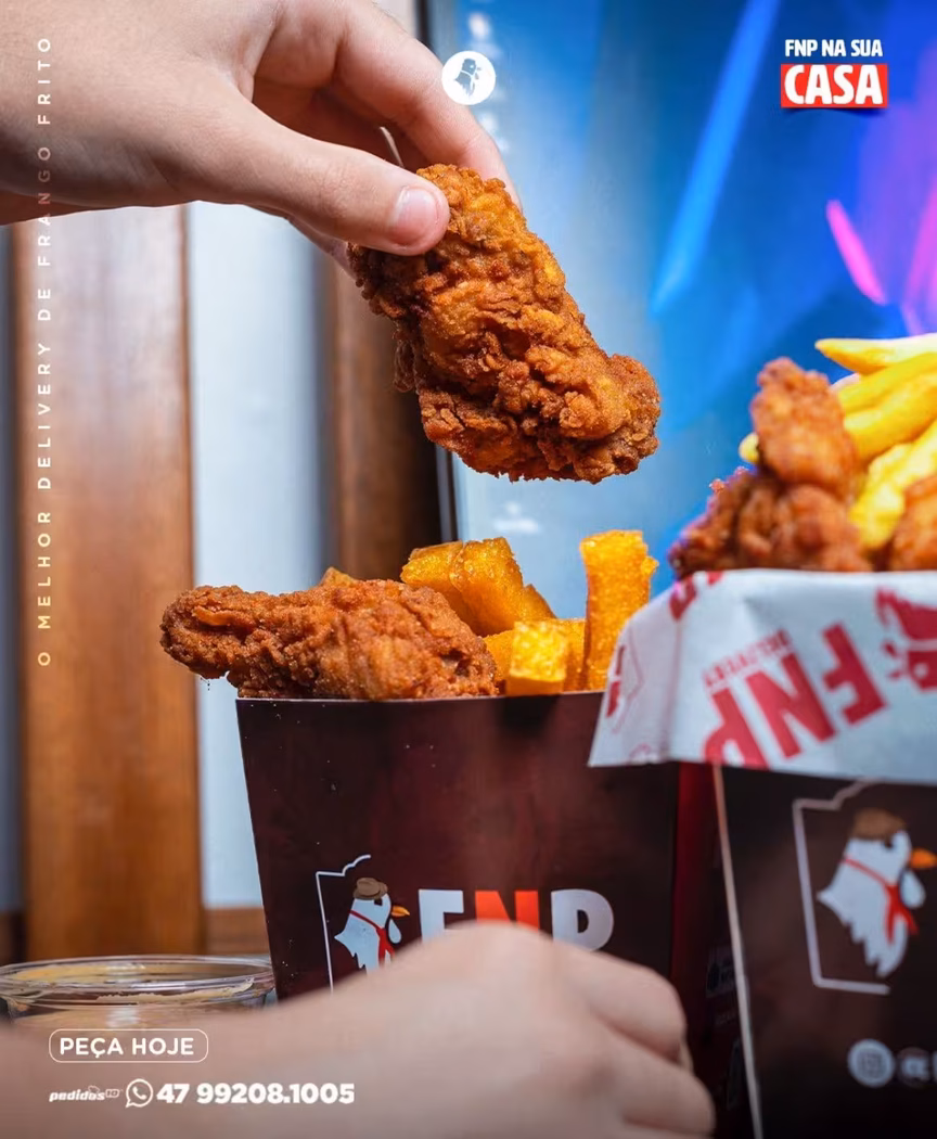 O FNP é uma rede de franquias de frango frito 100% especializada em delivery. A ideia nasceu no ano de 2018, em Alegrete (RS), com Paulo Roberto Cortelini Borba Júnior, fazendo todo o preparo ainda de forma caseira, em sua própria residência. Hoje a rede é a maior de frango frito do Sul do Brasil, com franquias em mais de 70 cidades nos três estados. Em 2020, a família gaúcha, também de Alegrete, formada por Carina de Freitas Mahl, Ênio Mahl e Vera Mahl, mudou de vida. Eles voltaram a Brusque depois de terem morado na cidade entre 1995 e 2003 e abriram a franquia FNP, que vem conquistando os brusquenses desde 7 de abril de 2021. O trio também administra o FNP Itajaí.