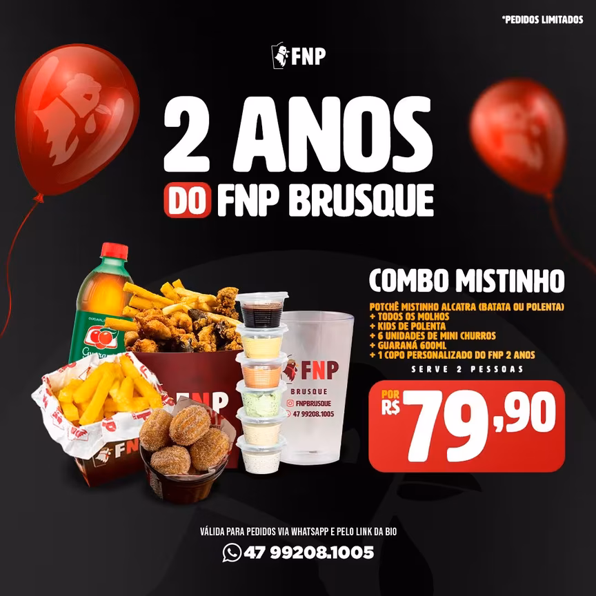 O FNP Brusque realizou, na quarta-feira, 12, uma ação solidária em comemoração ao segundo ano da unidade, com arrecadação de alimentos para a Paróquia São Luís Gonzaga. O aniversário da franquia contou com combos especiais e a troca de um quilo de alimento não-perecível por um potchê individual de frango, com batata e um molho da casa. A campanha de arrecadação funcionarou apenas no balcão, das 17:30 às 20h. A partir das 20h, estariveram disponíveis os combos promocionais, tanto no balcão quanto por delivery. A unidade está localizada na rua Gustavo Richard, 15, no Centro 2. Iniciativas do tipo são hábito em Alegrete (RS), cidade onde nasceu o FNP. “Eles trabalham com ações sociais em várias datas e ocasiões, e a gente quer trazer isto para cá também”, comenta a sócia-proprietária do FNP Brusque, Carina Mahl, que já estuda outras ações futuras. As entregas são realizadas em toda a cidade e também em Guabiruba. Há também o programa de fidelidade disponível no site fnpbrusque.com.br e no Whatsapp. A cada 10 compras, você ganha um potchê médio.