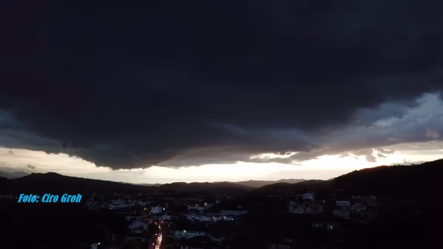 Consultei também o meteorologista Piter Scheuer, sendo que este profissional prefere aguardar até amanhã, quinta-feira, para informar algo mais conclusivo a respeito deste possível evento climático extremo, mas nos adianta que a ventania, CASO SE CONFIRME ESTA TENDÊNCIA, passará pelo Vale do Itajaí apenas "de raspão".