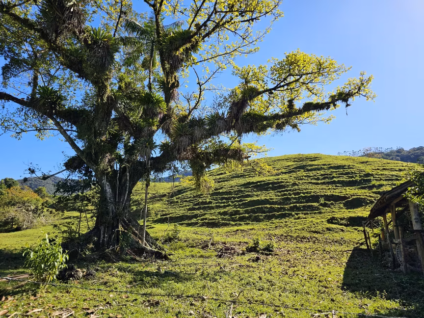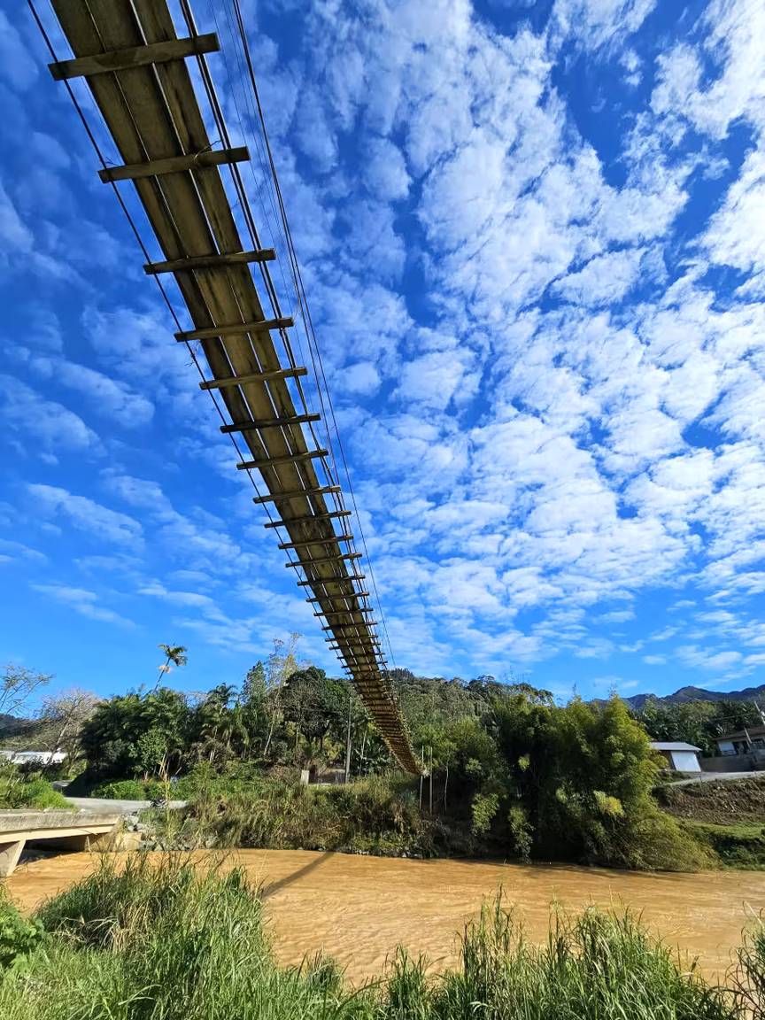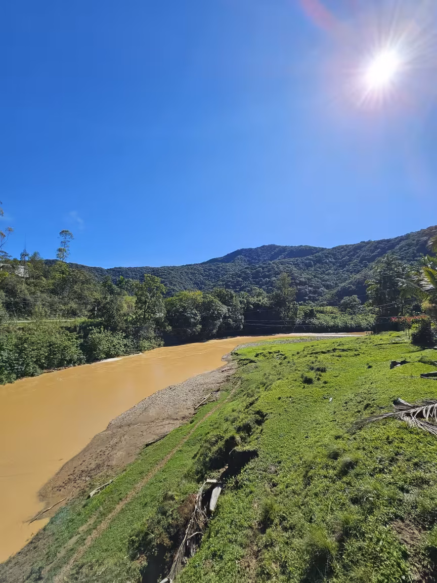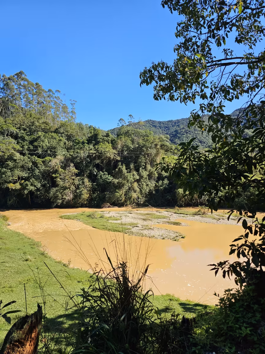 A natureza intocada prevalece nesse lugar, com uma diversidade de pássaros e animais que vagam livremente pela área. Tudo isso acontece em harmonia com as águas do rio Itajaí Mirim, que se misturam com o azul cristalino do céu, elevando a beleza do ambiente a um novo patamar.