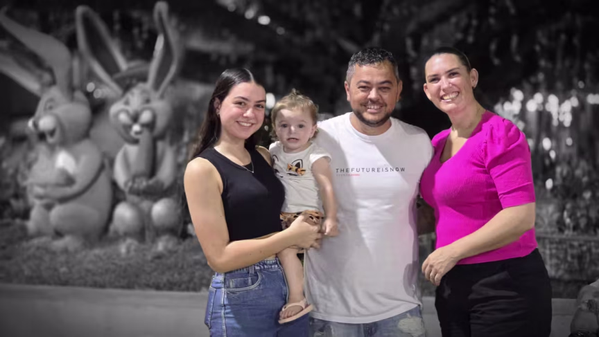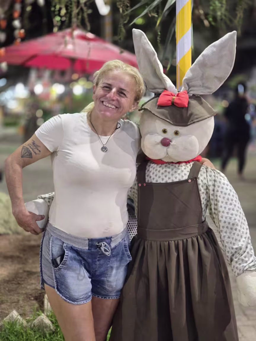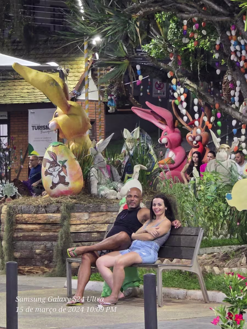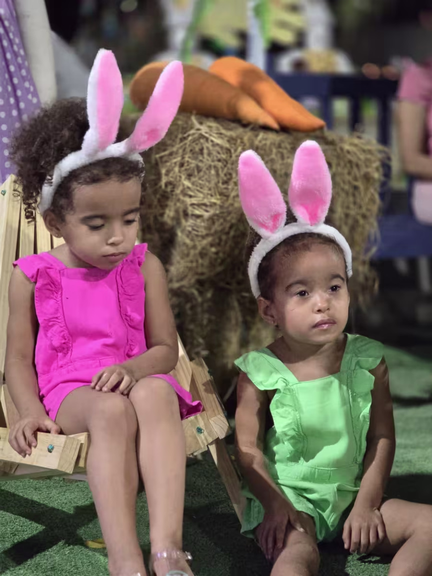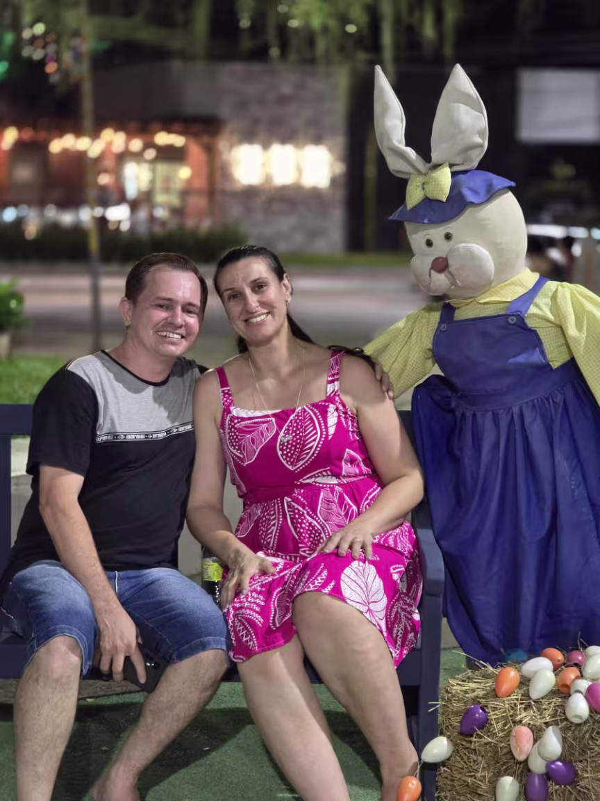 A atmosfera festiva então envolveu a praça, que se transformou com o encantador Chalé da Turma do Coelho e uma decoração vibrante repleta de ovos pintados.