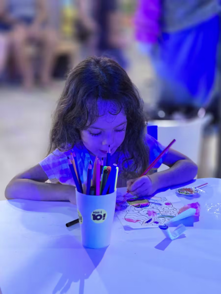 Alegria e cor inundaram o espaço com música, dança e pintura facial, trazendo sorrisos aos rostos infantis.