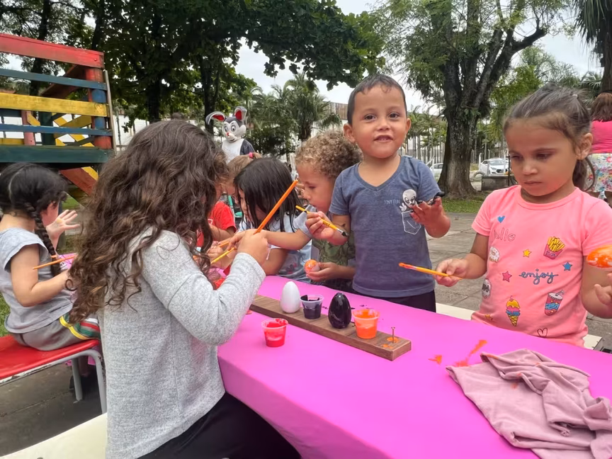 Alunos de várias escolas de Brusque participarão da decoração da cidade para a Páscoa. As crianças pintaram diversos ovinhos que logo serão utilizados na decoração de praças e parques do município.