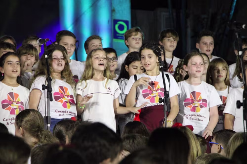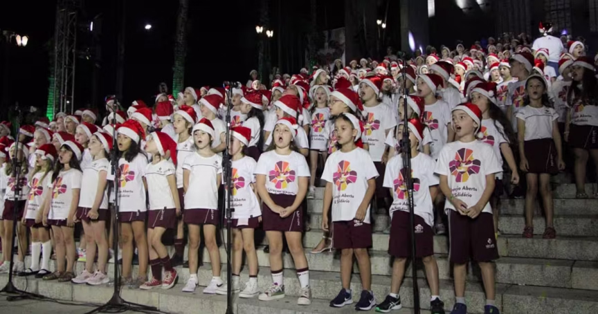 GALERIA – Cantata de Natal com mais de 300 alunos do colégio São Luiz emociona público nas escadarias da Matriz, em Brusque
