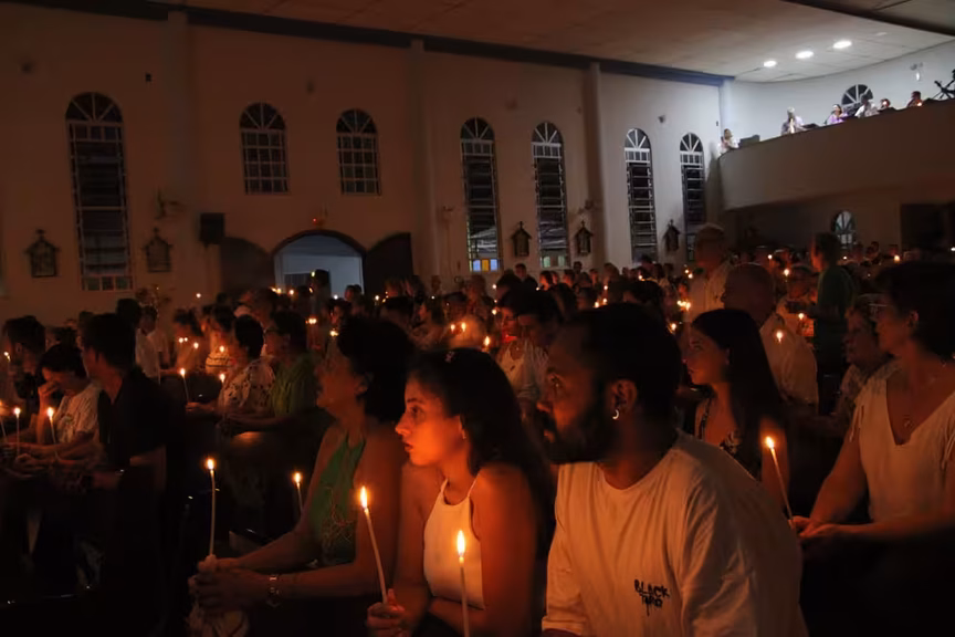 Pouco antes de finalizar a celebração, as luzes da capela foram apagadas, dando espaço para a luz das velas, que cada fiel recebeu na chegada à missa. Assim, o Santíssimo também percorreu os corredores da igreja da comunidade, acompanhado pelas crianças, em um momento marcado por muita fé e emoção.