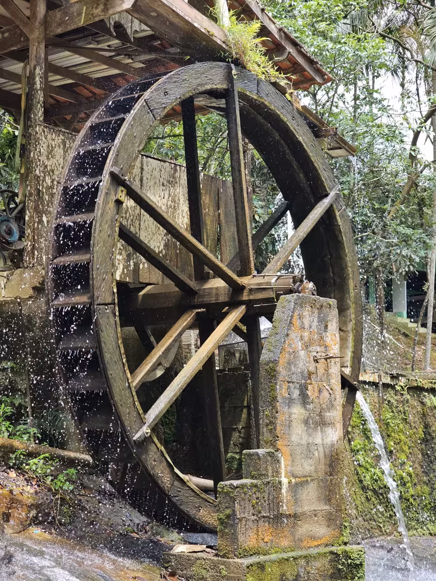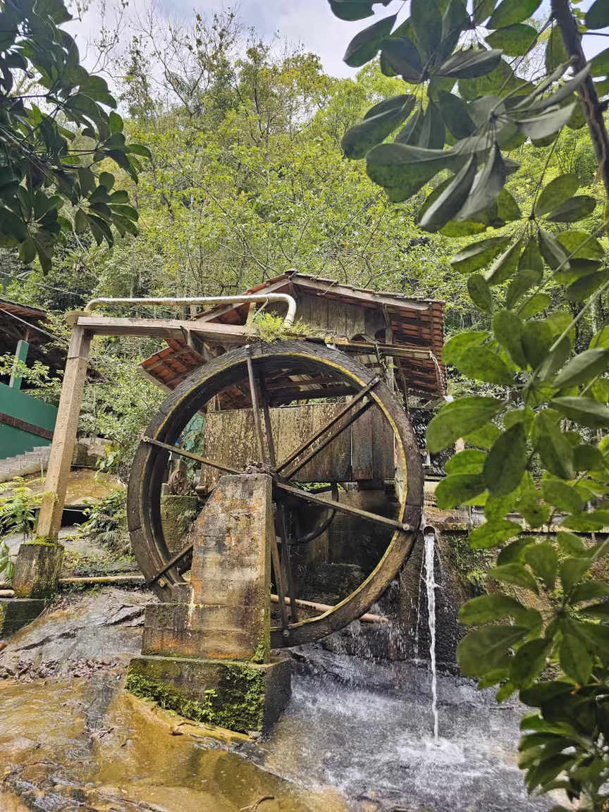 Casas antigas além da cascata