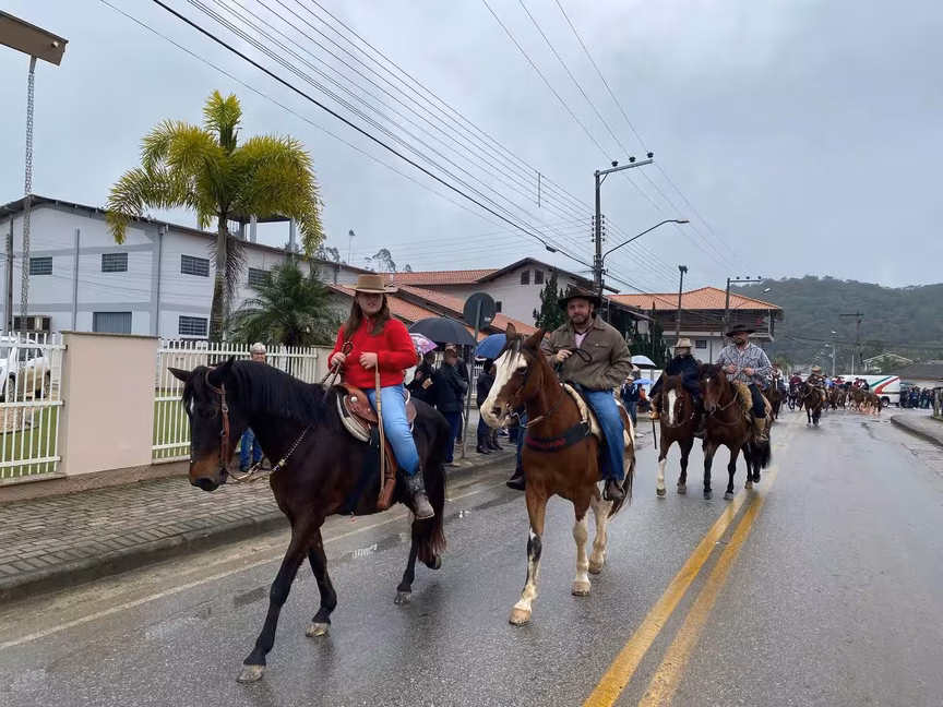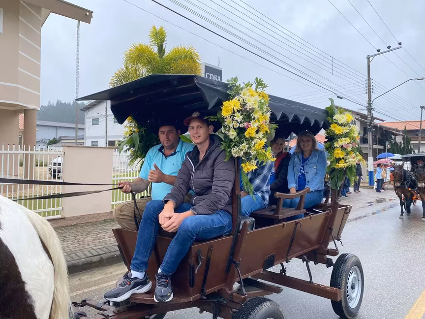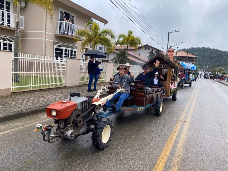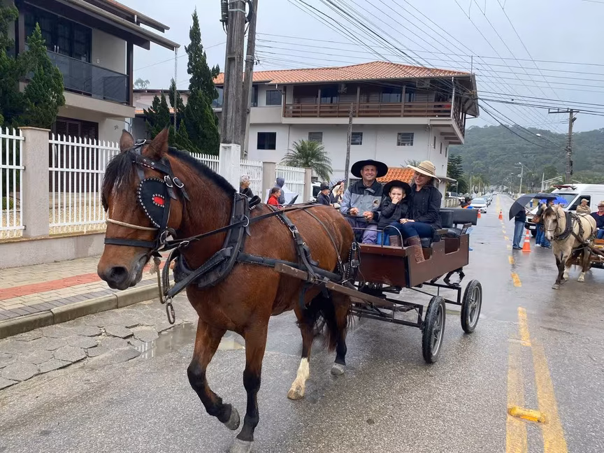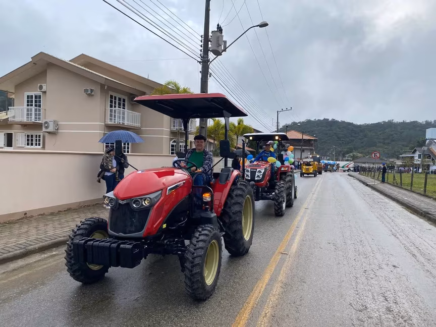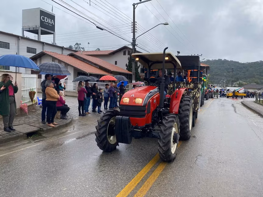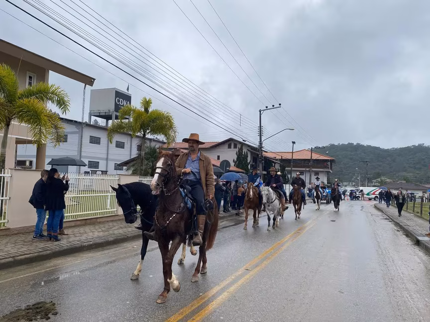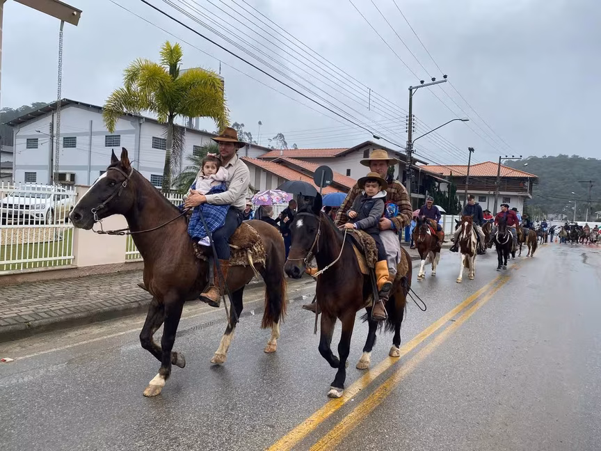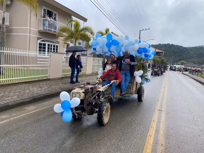 A cavalos, em tobatas, carroças e tratores, diversas pessoas participaram do Desfile tradicional dos Colonos na manhã deste domingo, 5. A ação fez parte da programação da Festa da Integração, em Guabiruba, que ocorre neste fim de semana no salão da igreja São Cristóvão, no bairro Aymoré.
