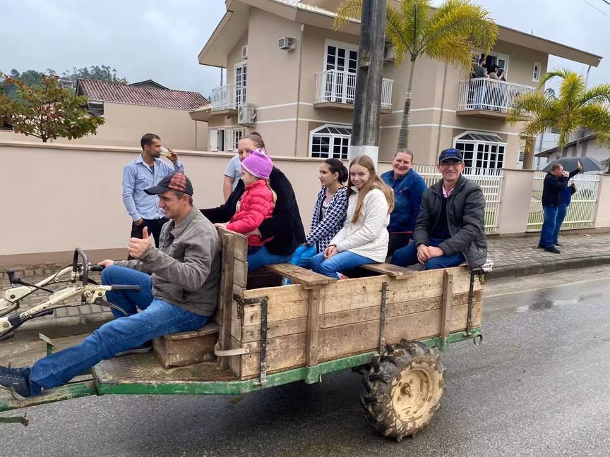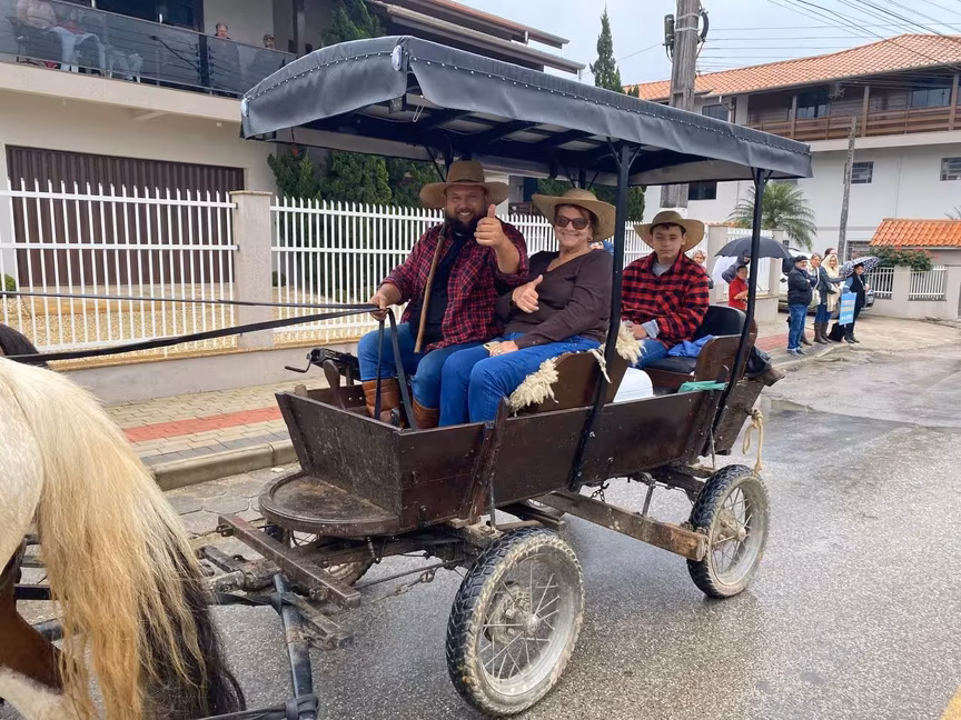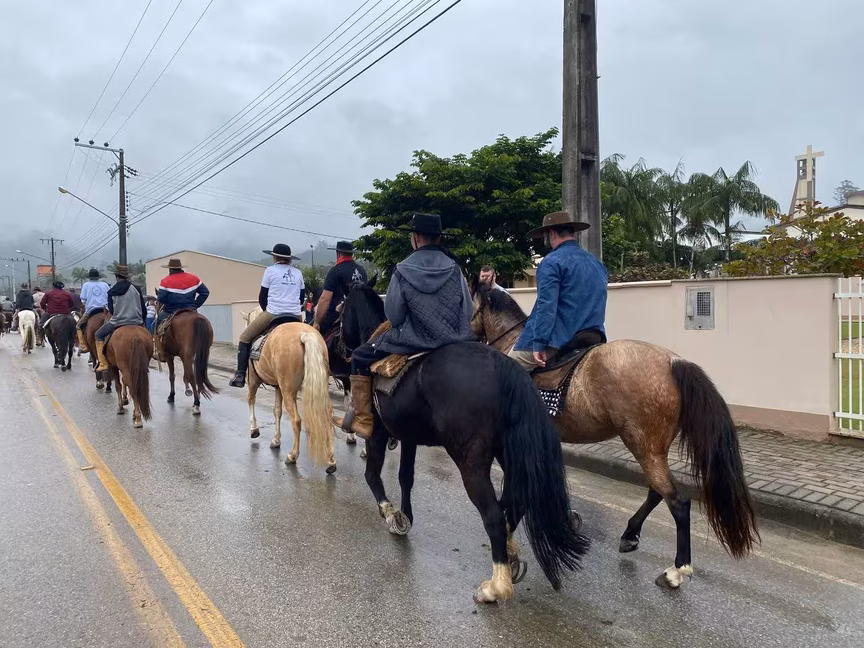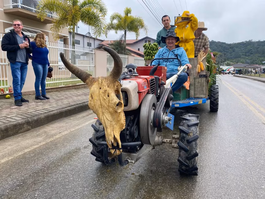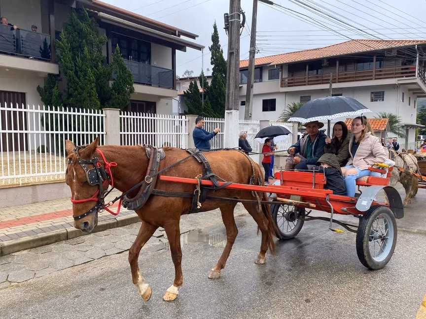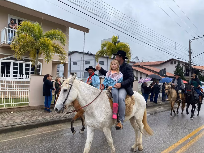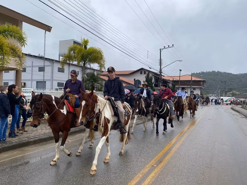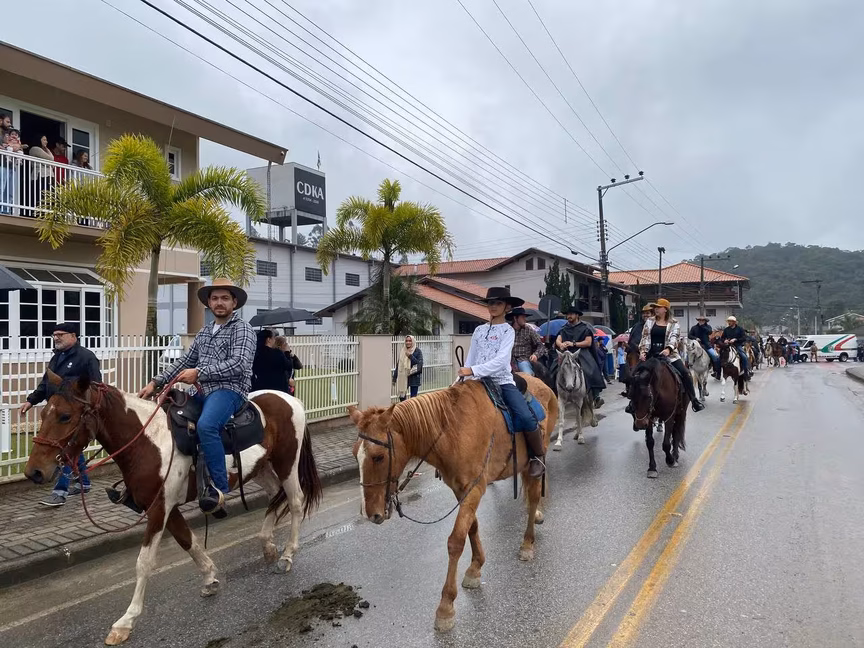 A cavalos, em tobatas, carroças e tratores, diversas pessoas participaram do Desfile tradicional dos Colonos na manhã deste domingo, 5. A ação fez parte da programação da Festa da Integração, em Guabiruba, que ocorre neste fim de semana no salão da igreja São Cristóvão, no bairro Aymoré.
