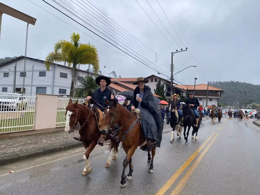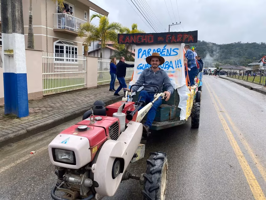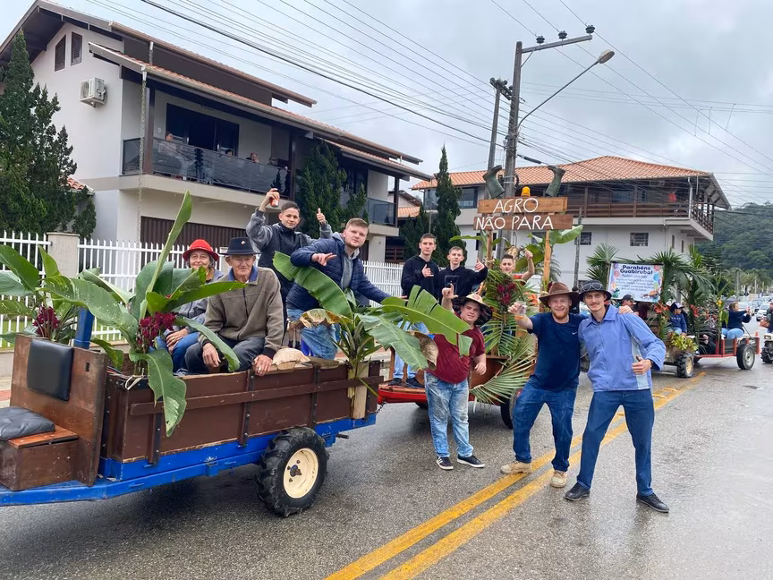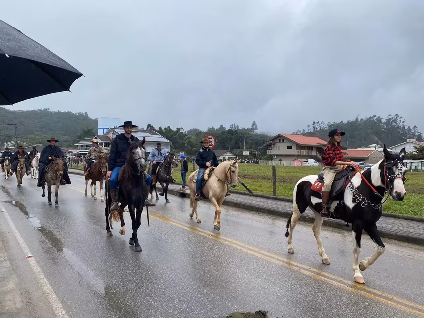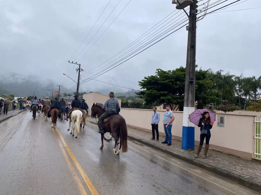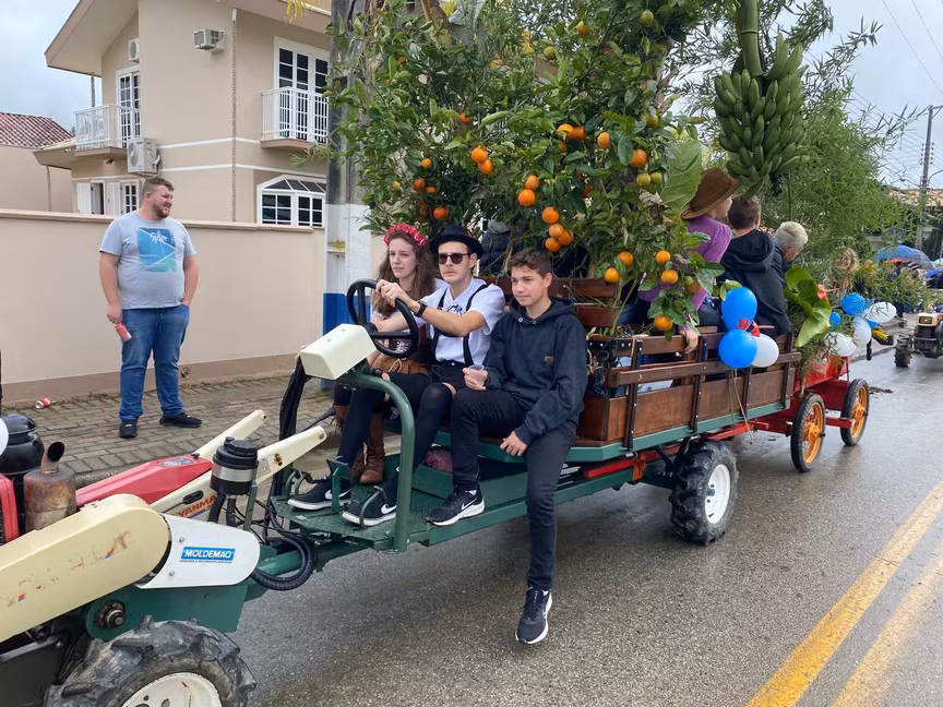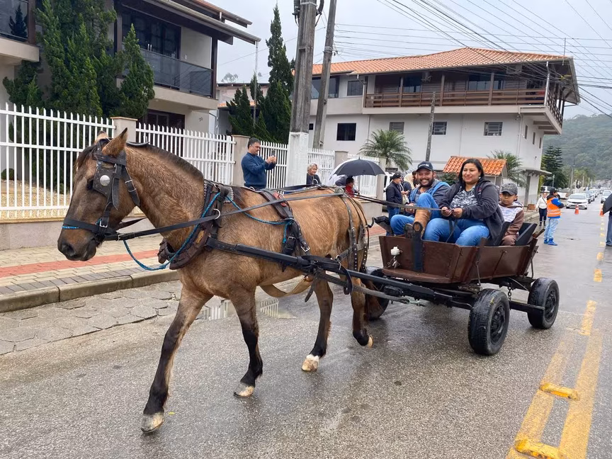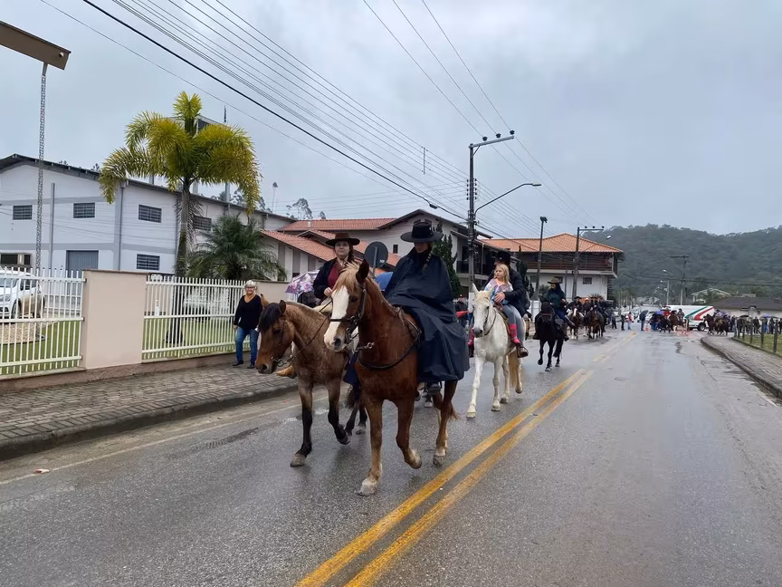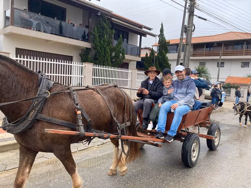 A cavalos, em tobatas, carroças e tratores, diversas pessoas participaram do Desfile tradicional dos Colonos na manhã deste domingo, 5. A ação fez parte da programação da Festa da Integração, em Guabiruba, que ocorre neste fim de semana no salão da igreja São Cristóvão, no bairro Aymoré.