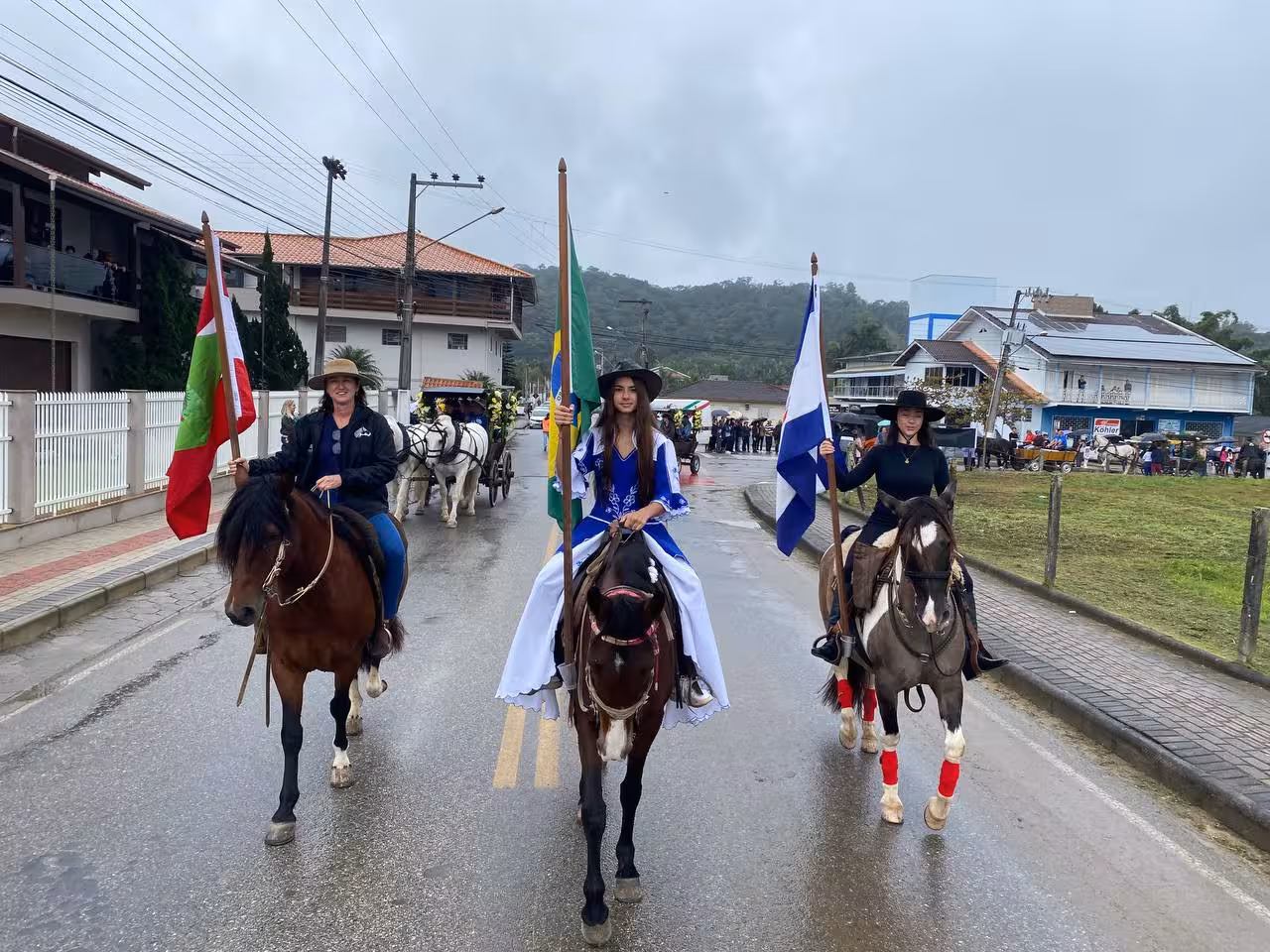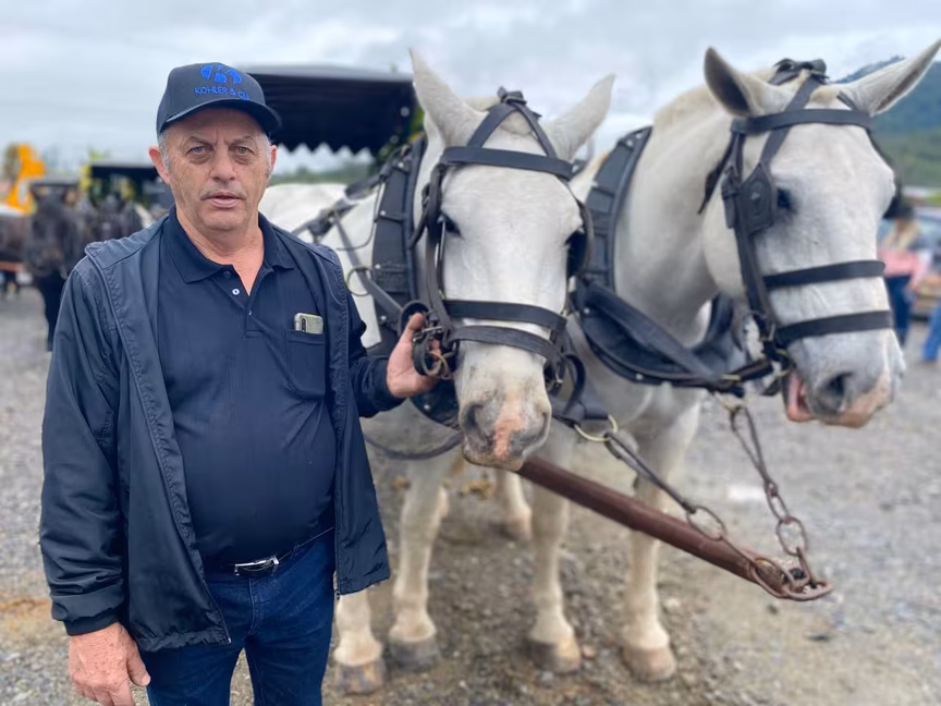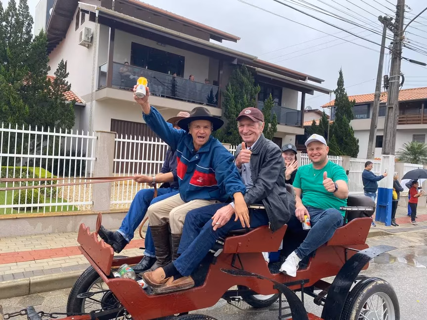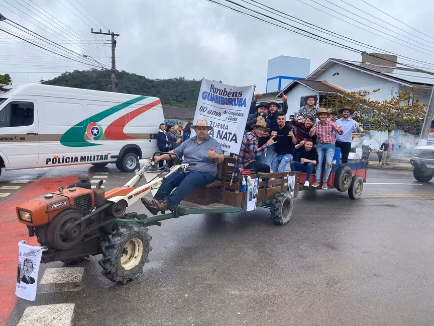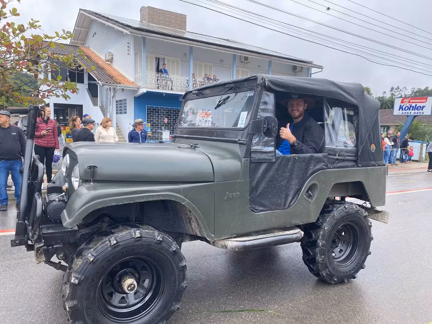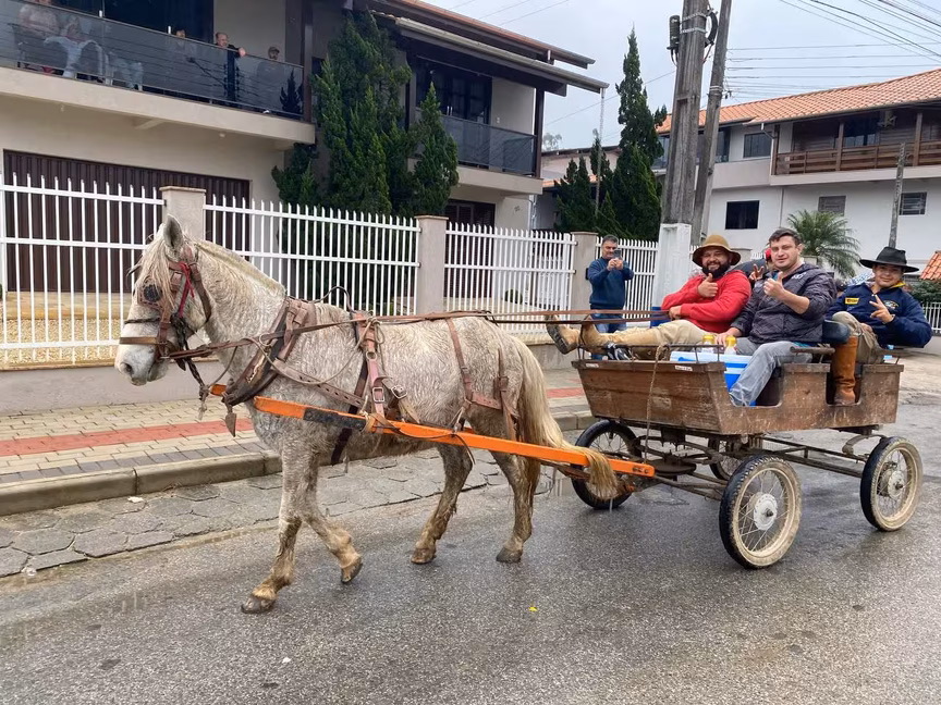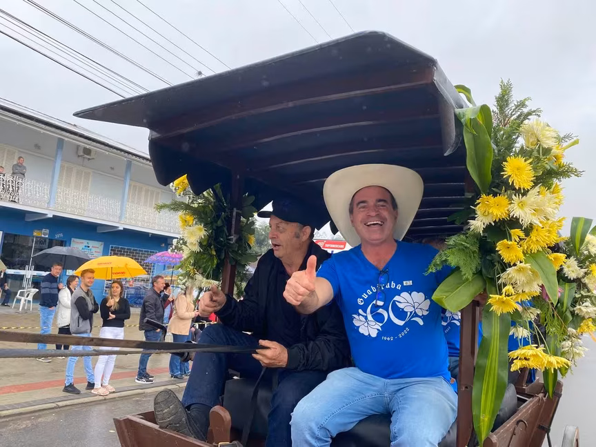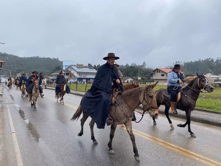 A cavalos, em tobatas, carroças e tratores, diversas pessoas participaram do Desfile tradicional dos Colonos na manhã deste domingo, 5. A ação fez parte da programação da Festa da Integração, em Guabiruba, que ocorre neste fim de semana no salão da igreja São Cristóvão, no bairro Aymoré.