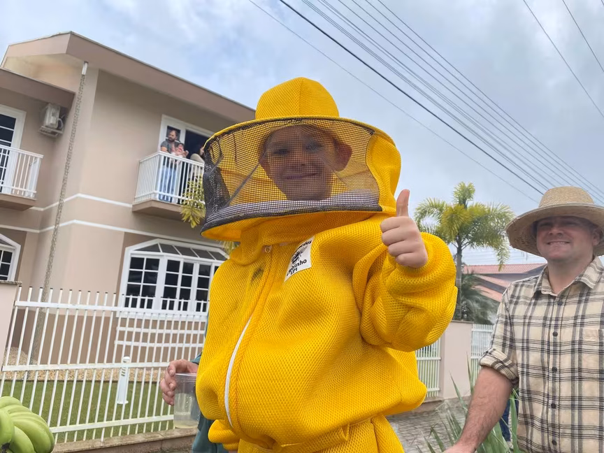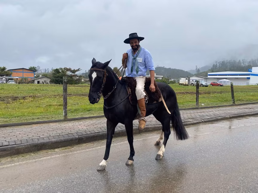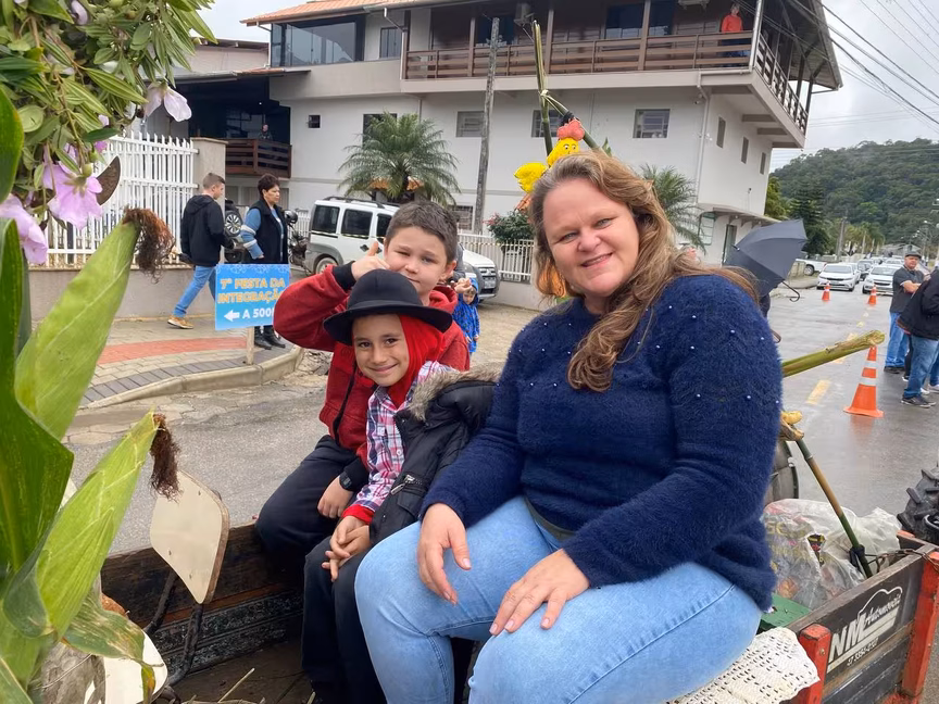 Dentre eles, estava o morador de Brusque Maicon William Schaefer, de 33 anos, que veio com a família. Maicon conta que participa desde criança do desfile e, desta vez, trouxe o filho Carlos Eduardo, 6, para participar pela primeira vez.