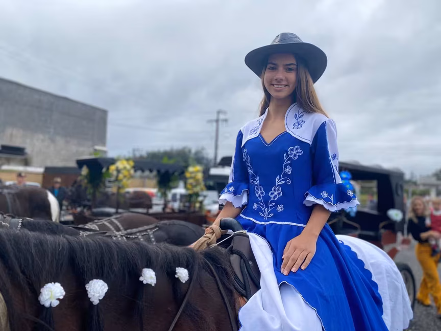 “Foi a minha primeira vez. É legal que o desfile junta todo mundo, tem parentes de outras cidades que vêm para prestigiar a festa da cidade e encontrar os amigos”, comenta.
