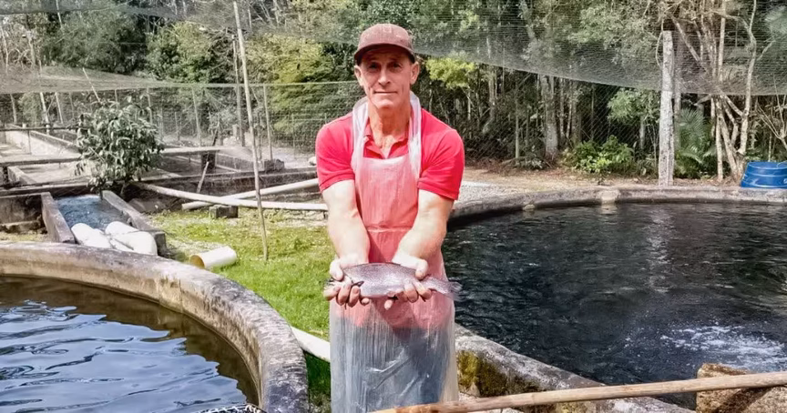 Foi lá que tivemos a oportunidade única de dialogar com Vilmar Colombi, um visionário empreendedor empenhado neste processo de criação de truta. Sua atuação representa um marco significativo nessa trajetória de avanços.