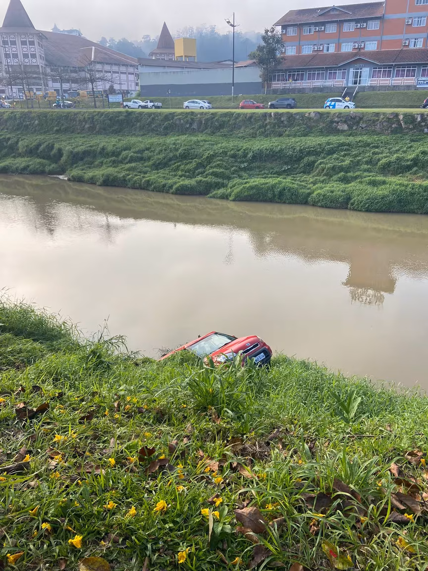 Imagens registraram como ficou o carro que caiu no rio Itajaí-Mirim, em Brusque, na manhã desta terça-feira, 22. O acidente ocorreu na Beira Rio, do lado da avenida Arno Carlos Gracher, perto do Sesc. Ninguém se feriu.