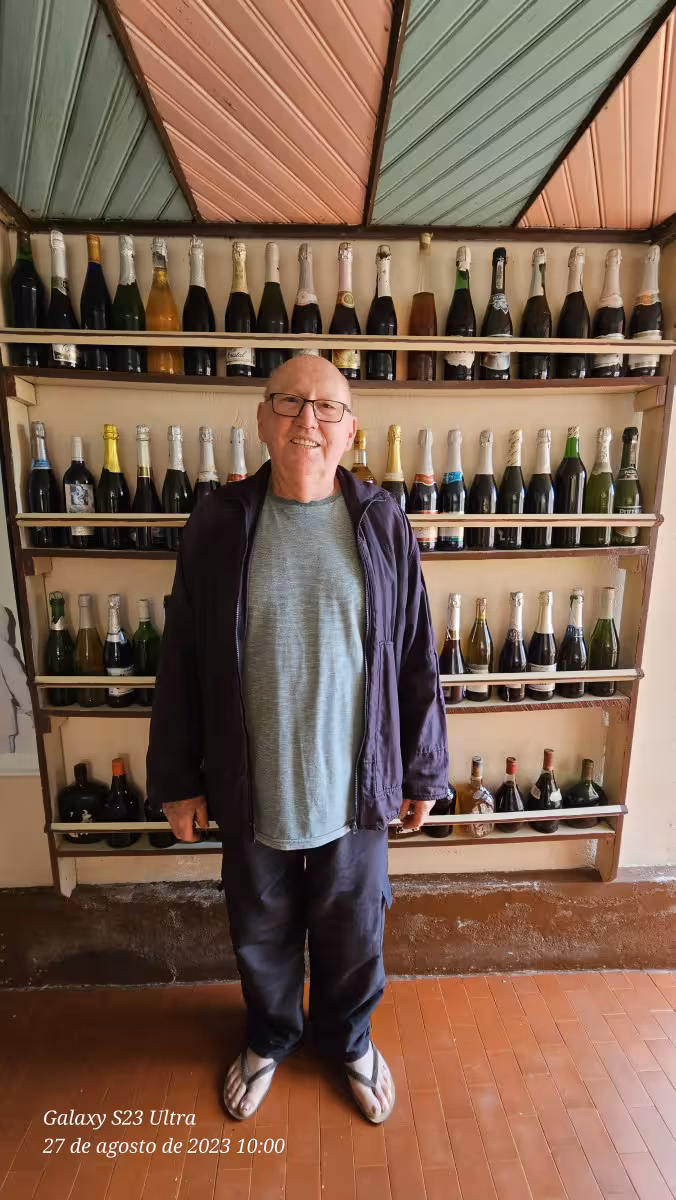 Contudo, o encanto vai além da moradia. O meticuloso cuidado de Roselis pelo jardim nos transporta a épocas passadas. Ademais, Irineu mantém com esmero garrafas e litros de vinho envelhecido, com algumas dessas bebidas remontando à década de 1990.