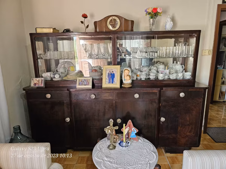 O interior acolhe preciosidades como um tradicional fogão a lenha, vários retratos de épocas antigas e uma delicada cristaleira, entre outros elementos que ressoam a antiguidade.