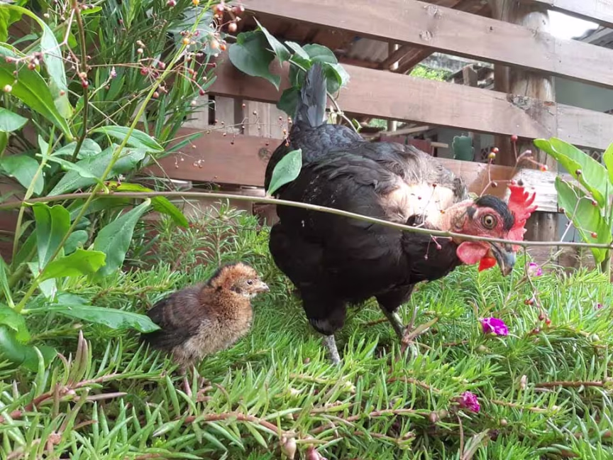 Um pequeno filhote órfão de aracuã foi adotado por uma galinha no Parque Zoobotânico de Brusque. A informação foi divulgada pela equipe do local nesta quarta-feira, 25.