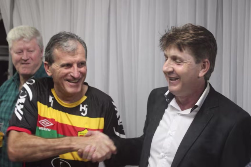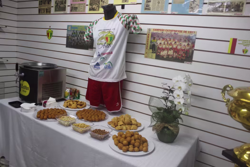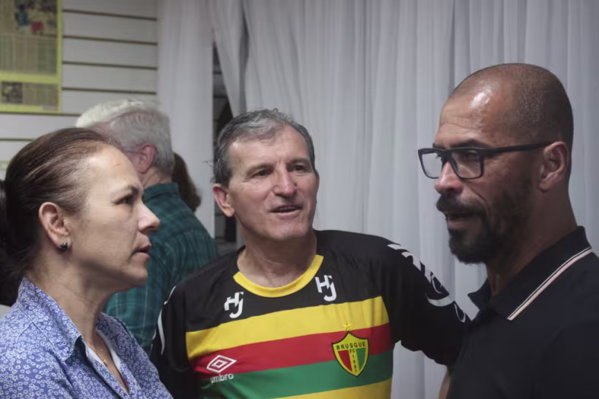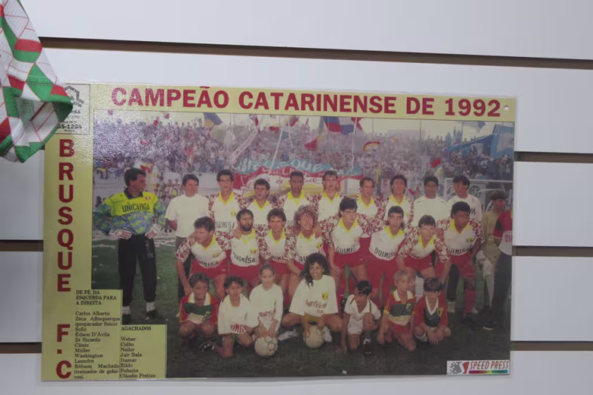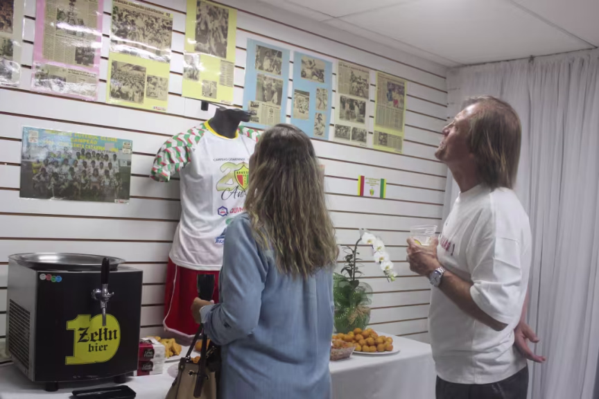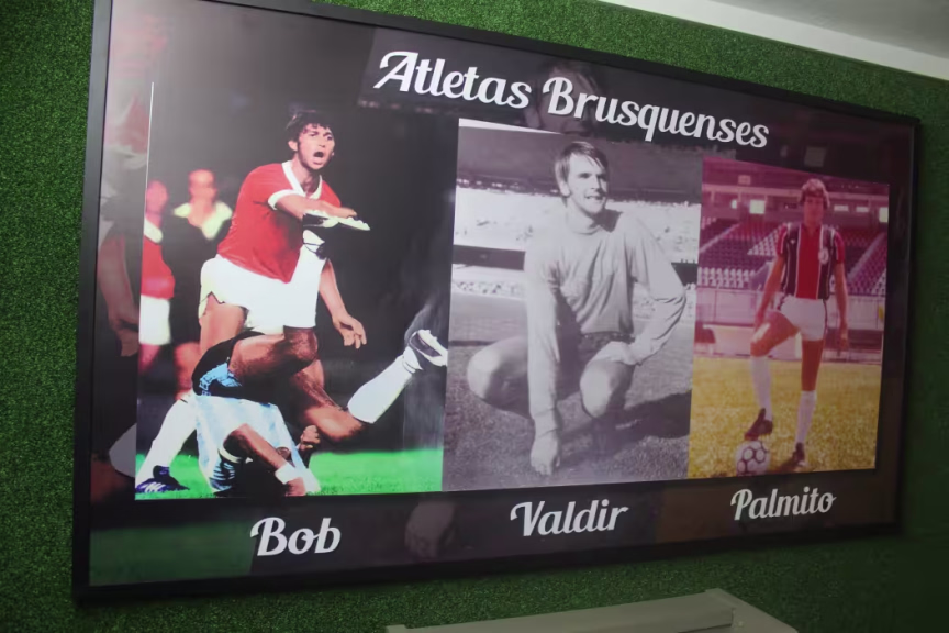 Bob, ex-zagueiro do Carlos Renaux que foi campeão brasileiro invicto em 1979 pelo Internacional, também conquistou o Campeonato Gaúcho e o Catarinense. Palmito, por sua vez, foi campeão catarinense com o Brusque em 1992, com o Criciúma em 1989 e cinco vezes com o Joinville entre 1981 e 1985. Cada um do trio tem agora parte de sua história no futebol profissional descrita nas paredes do provador esportivo da loja. Três outros personagens icônicos do futebol da cidade foram homenageados. Um deles é Érico Zendron, fotógrafo brusquense que marcou época com seu vasto repertório de imagens, em especial no esporte. Boa parte das fotos expostas são de autoria dele. Júlio Hildebrand, o “Julinho” , ex-jogador de Carlos Renaux e Paysandú, também foi homenageado. “Ele sempre se manteve ativo no futebol mesmo após a aposentadoria”, comenta Gevaerd. E, Onildo Cervi, massagista que trabalhou por décadas tanto no Carlos Renaux quanto no Paysandú e integrava também a seleção catarinense, também foi lembrado.