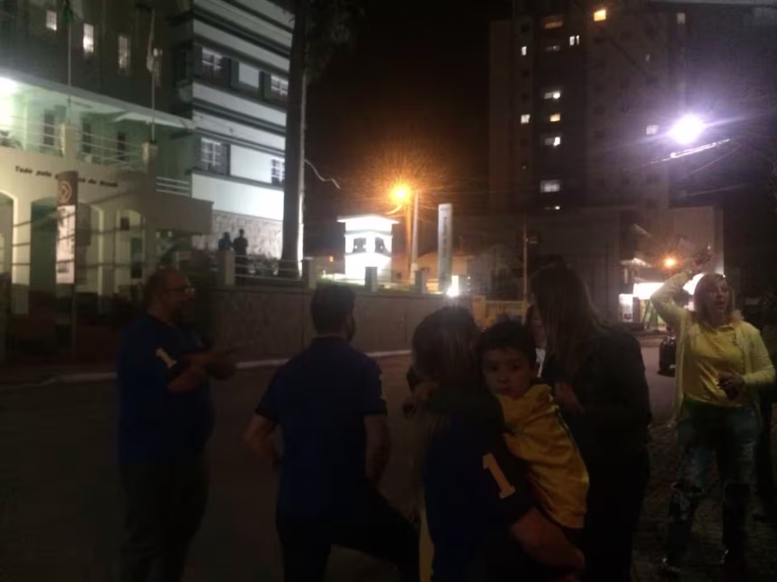 Simultaneamente, cerca de 30 pessoas estiverem em frente ao Tiro de Guerra, no Centro, munidos de bandeiras do Brasil.