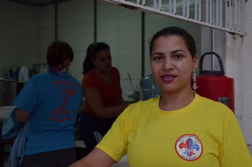O compromisso da família não é apenas levar e buscar os filhos na sede do grupo, mas se integrar nas atividades, ajudando na organização, como Joselene Fontana, que tem um filho de dez anos que é lobinho no grupo de Brusque. O menino já participa do escotismo há pouco mais de um ano, e ela faz parte da equipe de pais e mães que colaboram na cozinha durante os eventos do GEB.