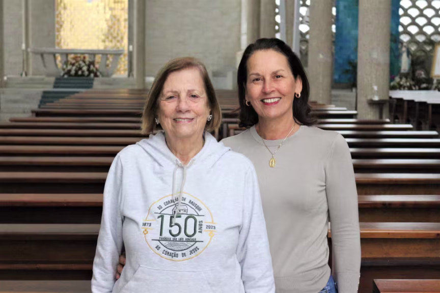 A vivência na paróquia São Luís Gonzaga aquece os corações de Mirian e Maria Teresinha. “Eu tenho uma sensação muito grande de aconchego com a nossa paróquia. É um sentimento de que a igreja é mãe, não só como uma frase textual, mas como sentimento real. Aqui me sinto em casa, tanto participando das missas quanto de algum movimento”, relata Mirian