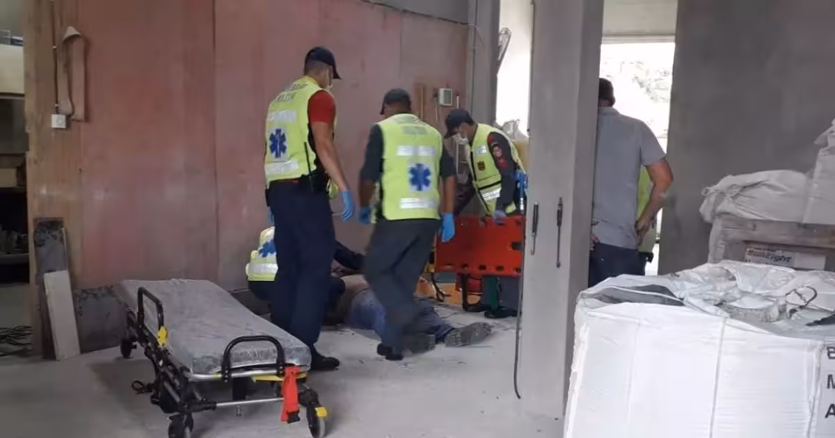 No local foi confirmada a ocorrência, onde um homem, de 41 anos, estava caída no chão, mas consciente e com os sinas vitais estáveis. A vítima caiu de uma altura de aproximadamente sete metros de altura.