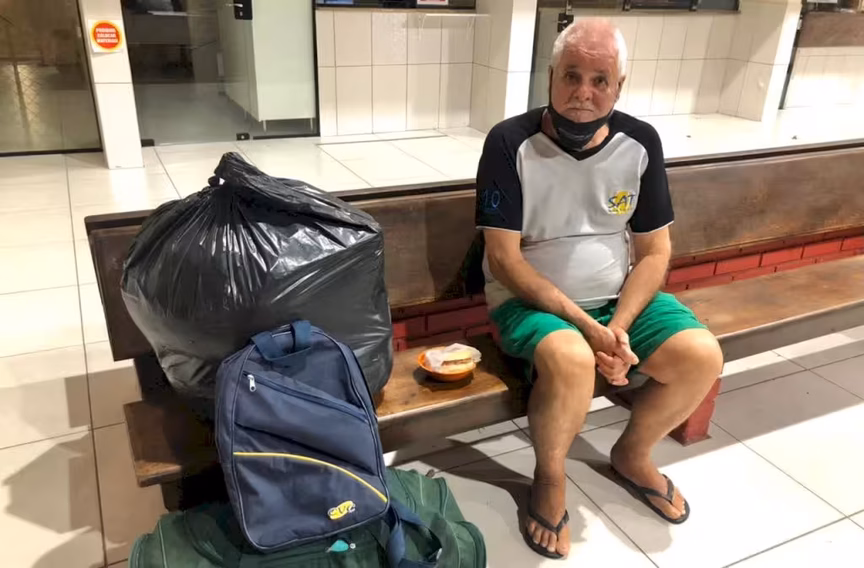 Ele conta que o filho o buscou na casa de sua outra filha, em Itajaí, trouxe até a rodoviária e o abandonou com alguns pertences e R$ 40. “Não me deu nenhuma explicação, só me mandou descer do carro”.