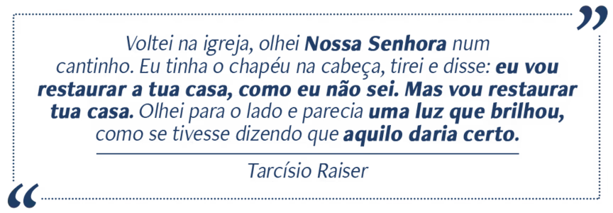 A fé e a perseverança do casal Tarcísio e Maria de Fátima Raiser transformaram a pequena igreja da localidade do Taquaruçu, em Brusque. O pequeno templo, inaugurado em 1986, ficou abandonado por mais de 20 anos e toda a história de luta da comunidade para construí-lo quase foi apagada.