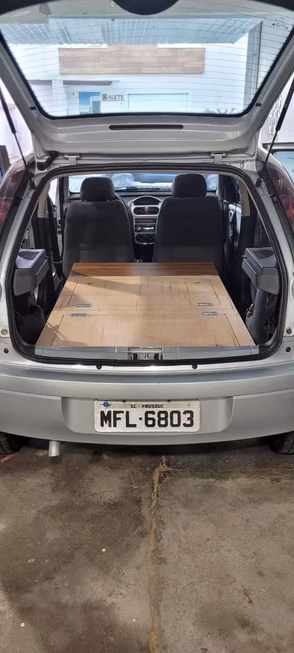 Roan e Natália fizeram modificações em um Corsa para poder viajar e dormir no carro