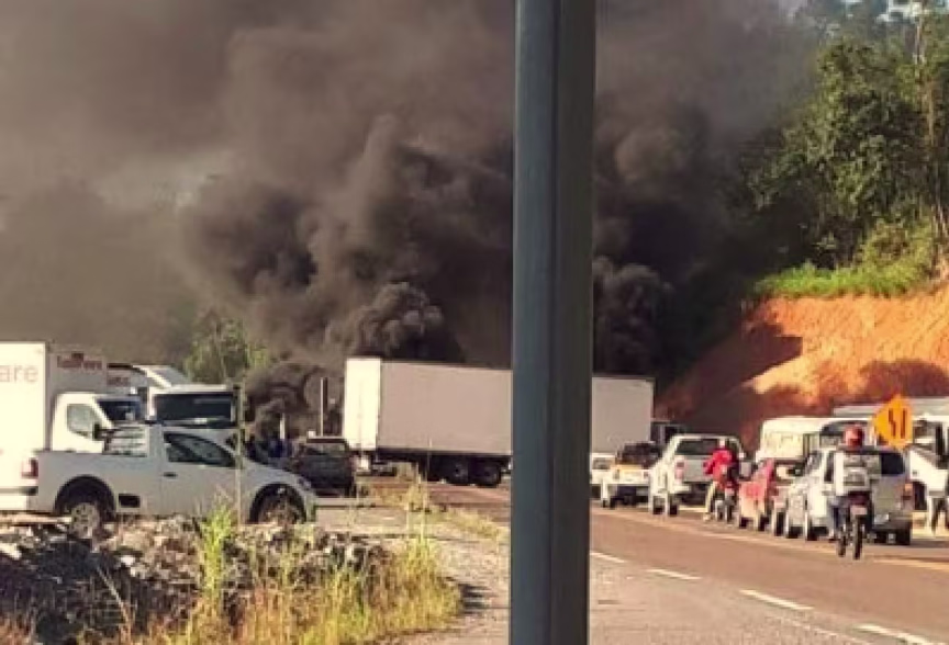 BR-470 totalmente bloqueada