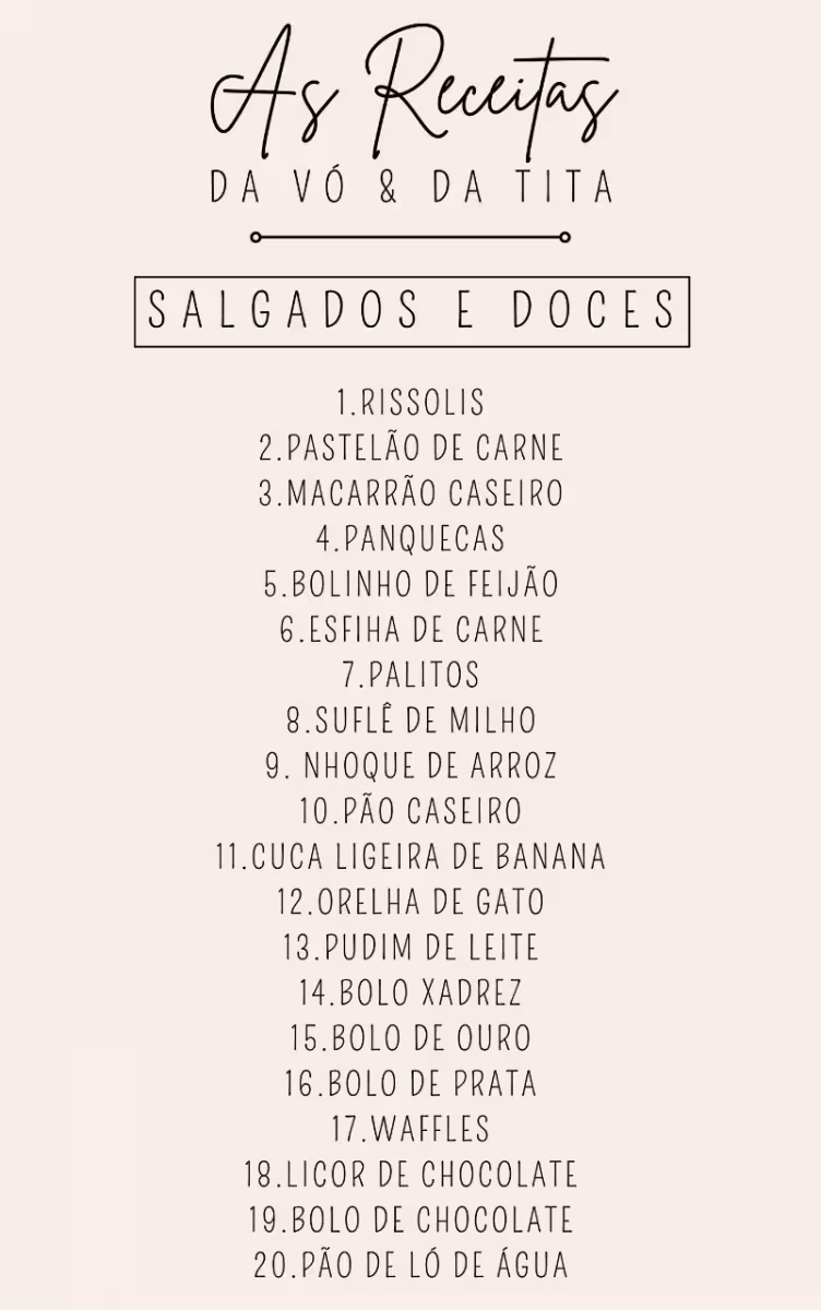 As receitas foram escolhidas a dedo pela família, buscando um consenso entre as mais utilizadas pelas irmãs, unindo simplicidade, facilidade e sabor.