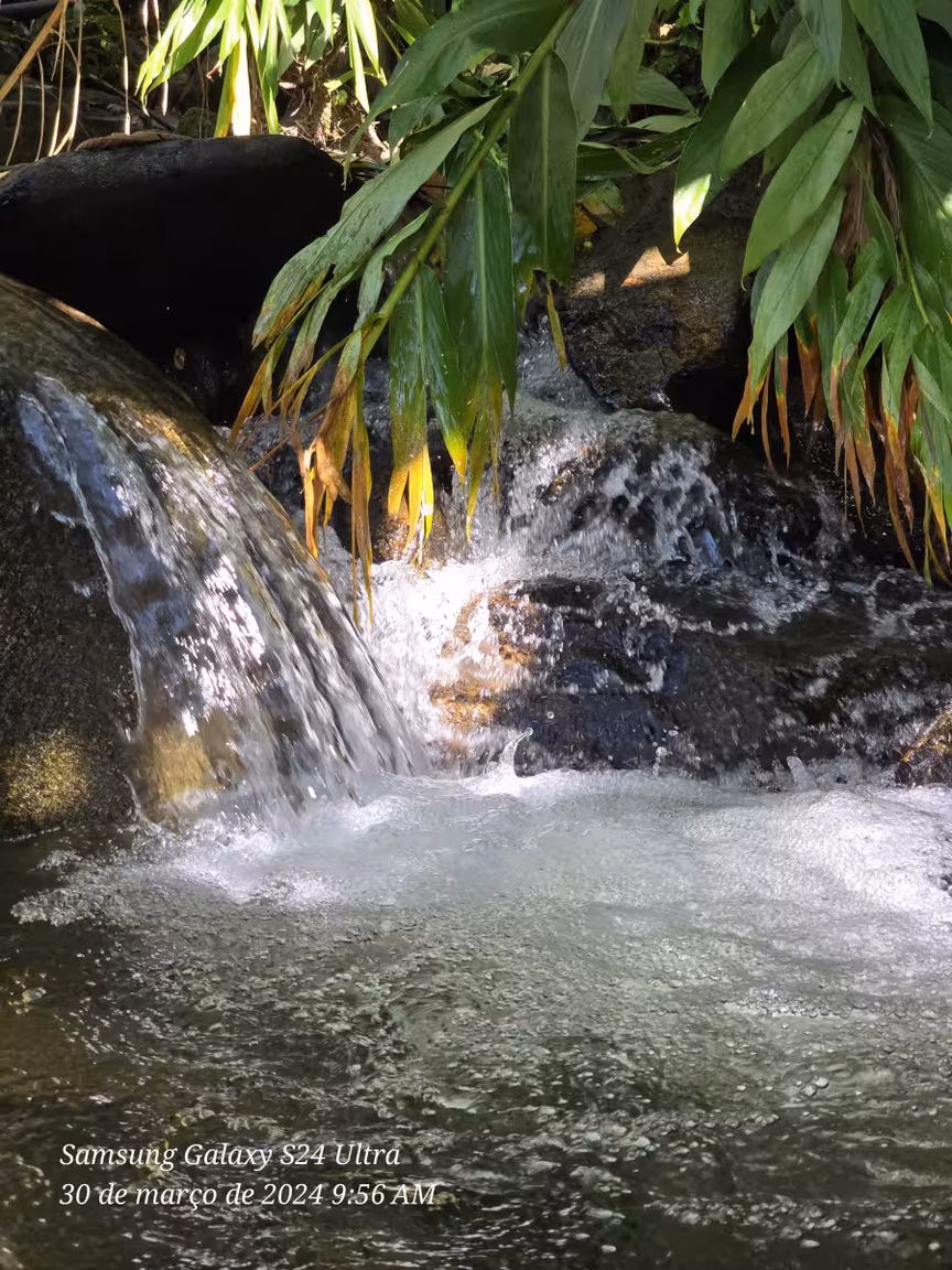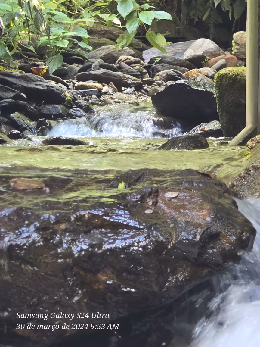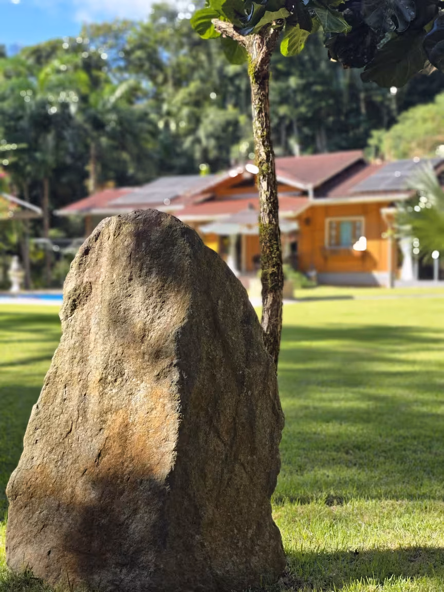 Como se a harmonia com a natureza fosse o fio condutor desse cenário, um sereno riacho serpenteia o entorno da propriedade, formando delicadas cascatas que convidam a mergulhos revigorantes nos dias ensolarados de verão.