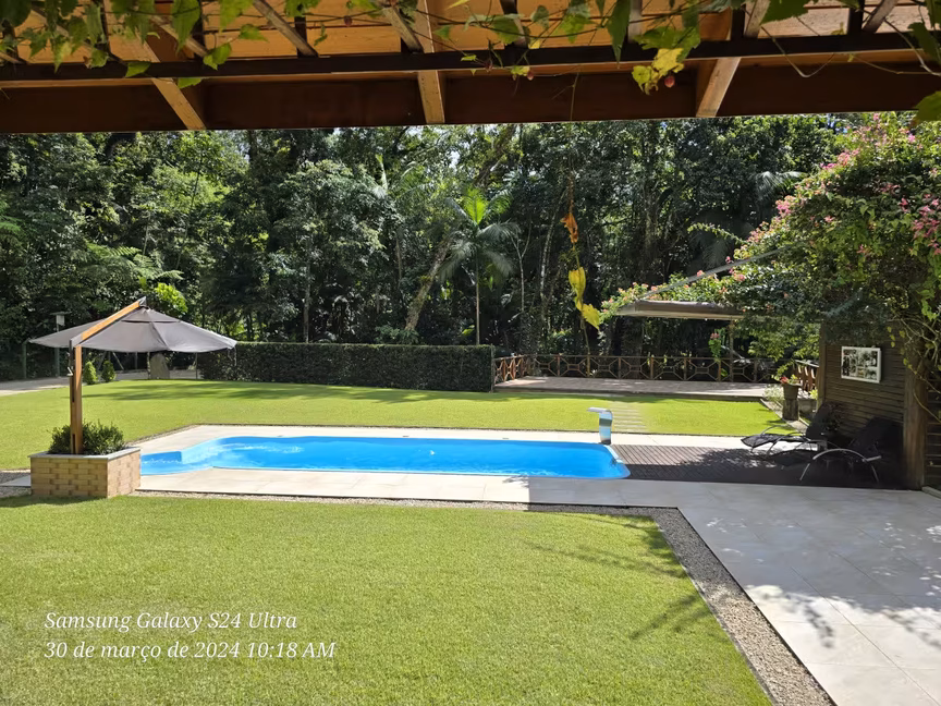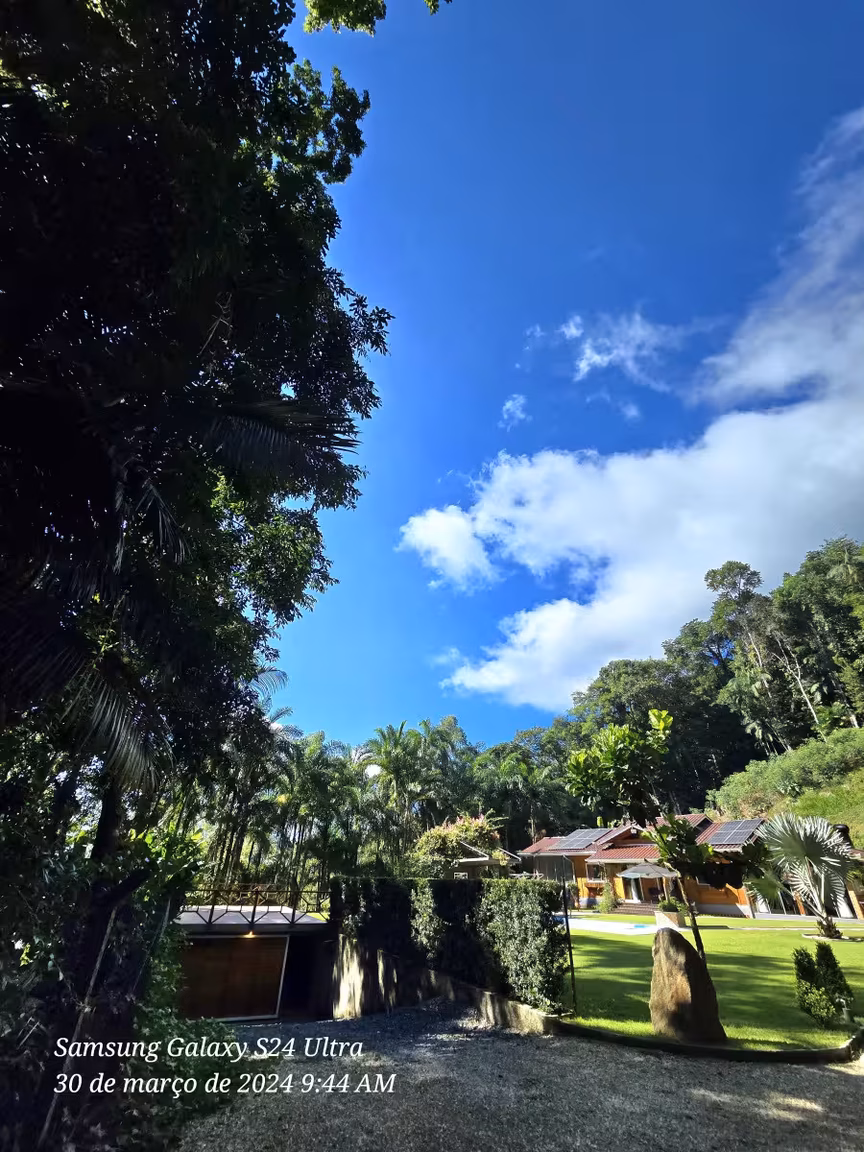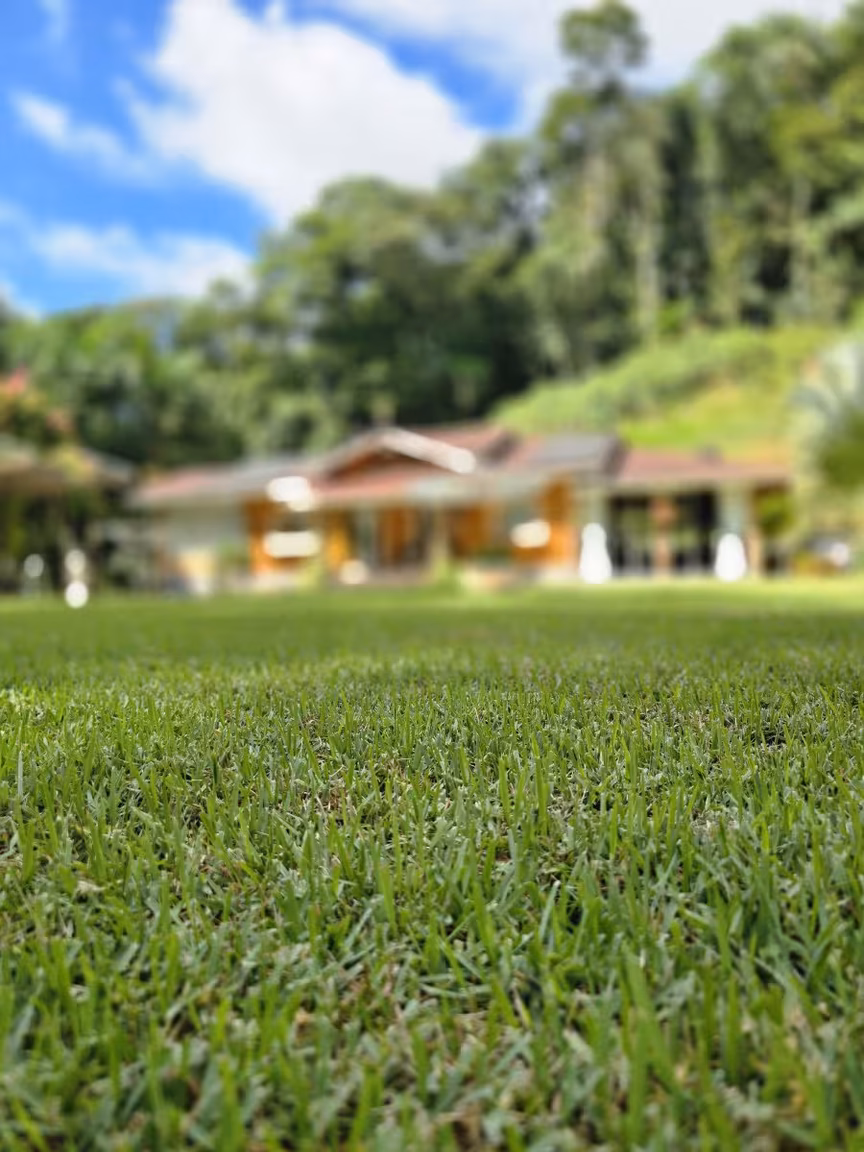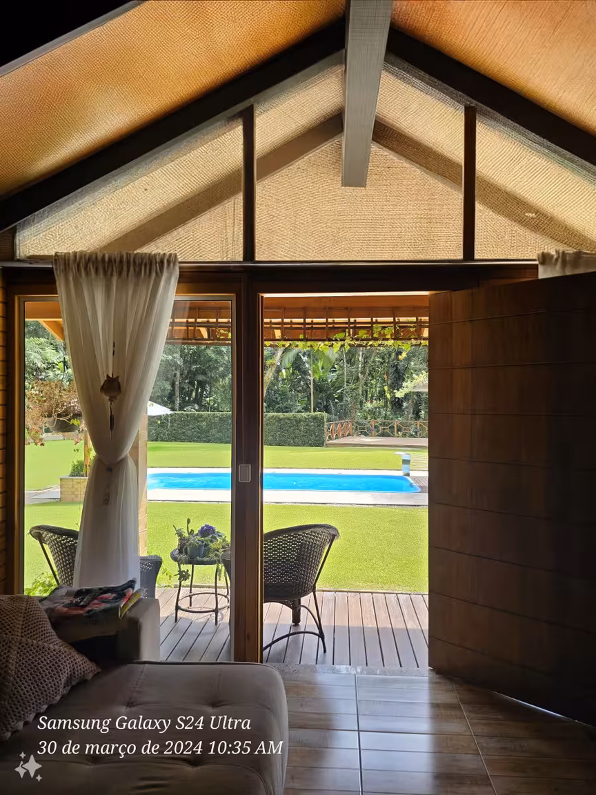 Como se a harmonia com a natureza fosse o fio condutor desse cenário, um sereno riacho serpenteia o entorno da propriedade, formando delicadas cascatas que convidam a mergulhos revigorantes nos dias ensolarados de verão.