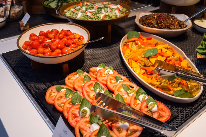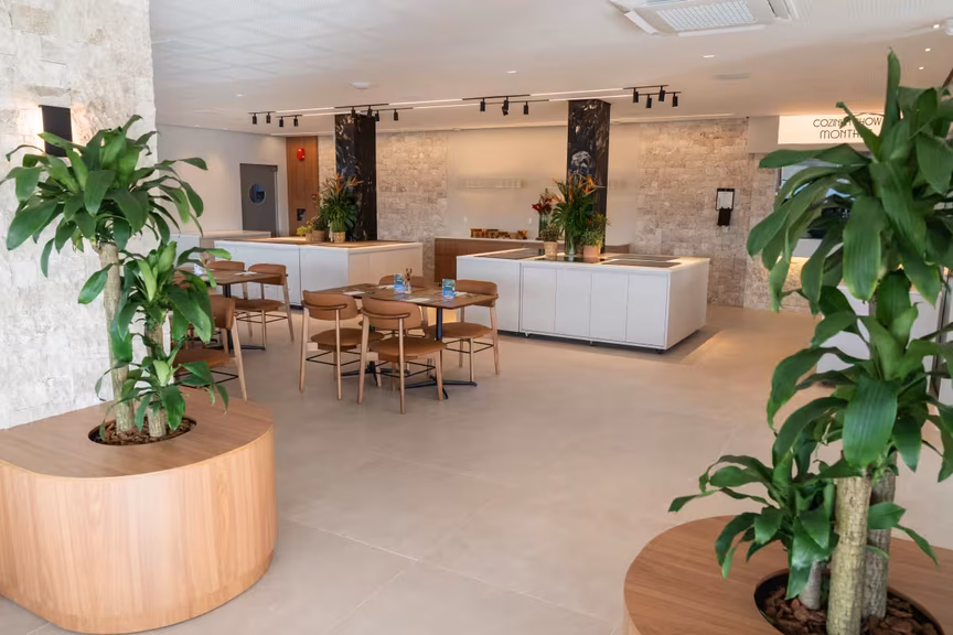 Outro destaque é a cozinha show, que permite aos clientes acompanhar o preparo de pratos feitos na hora. O sistema de pedidos em tablets agiliza o atendimento em todas as refeições, desde o café da manhã até jantares temáticos, como a noite de massas, onde é possível solicitar pratos personalizados.
