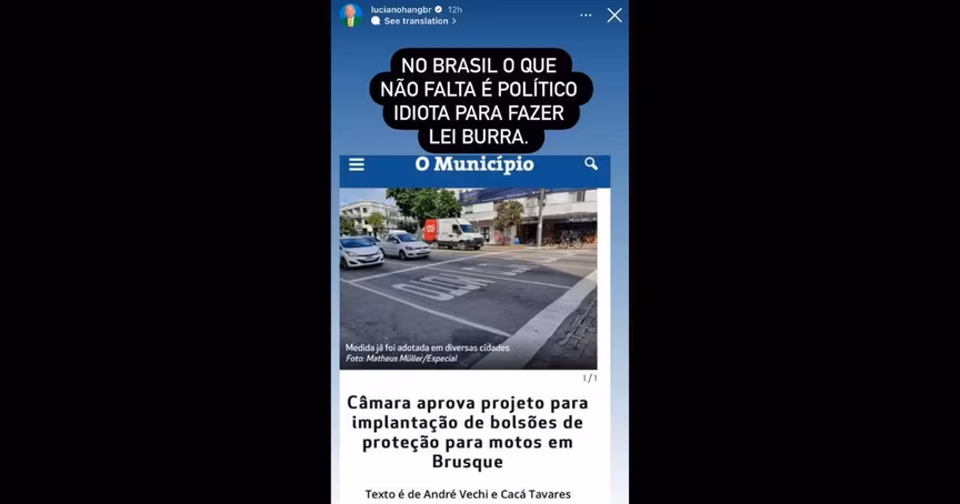 "No Brasil o que não falta é político idiota para fazer lei burra", disse o empresário em uma publicação no Instagram.