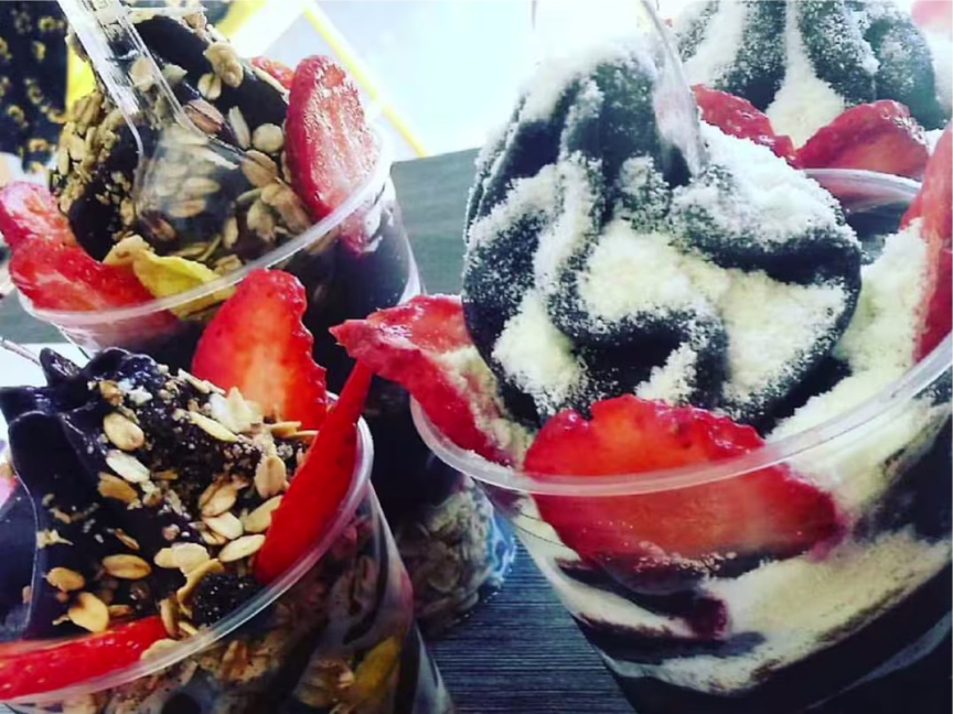 Delícias são servidas com dezenas de combinações pela Língua Roxa Açaí, no Centro de Brusque