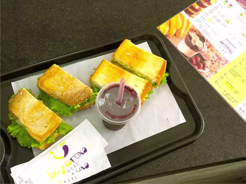 Embora tenha o açaí e o cupuaçu como carros-chefe, o Língua Roxa tem opções para todos os gostos. O sandubasso faz sucesso, conta Rosângela, principalmente ao meio-dia. “Trazemos esse pão direto de um produtor de Blumenau, que faz especificamente para nós”, diz a sócia. O cliente pode escolher o queijo, o pão e a carne. O sanduíche é completado com cinco saladas. “É uma refeição”, ressalta Rosângela. Também na linha de alimentação de qualidade e saudável, o Língua Roxa tem em seu cardápio mais de dez sucos feitos com frutas, além de opções com polpa e sucos detox.