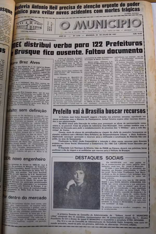 Divididas em dez cotas, as indústrias têxteis Renaux, Buettner e Schlösser e seus respectivos diretores assumiram o veículo de comunicação e delegaram a Cyro Gevaerd a missão de administrar o semanário, em junho de 1987.