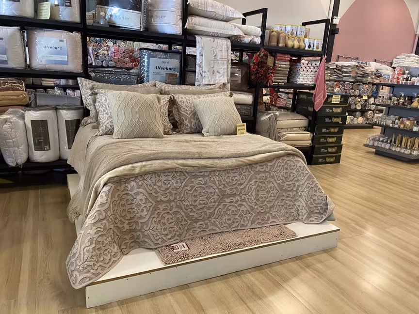 Com produtos de cama, mesa, banho e decoração, loja de fábrica traz muitos descontos na queima de estoque