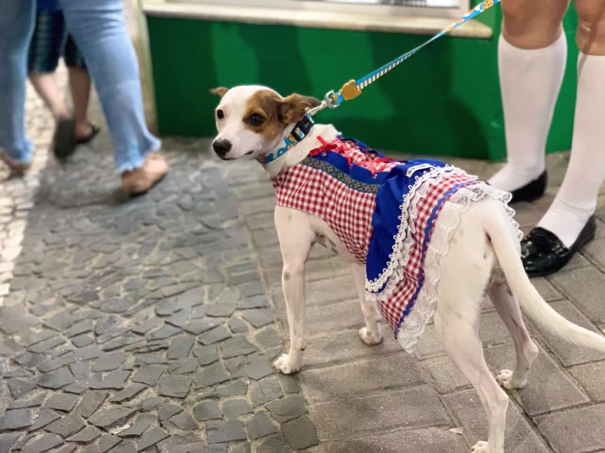 Os trajes típicos para pets também movimentam o comércio. Na Pet Center Brusque, no Centro, esse é o terceiro ano que as roupas de fritz e frida para cães estão à venda.