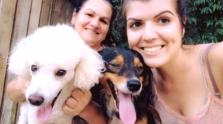 Lourdes e Fabiane Maria Betinelli com os cães Otto e Apolo