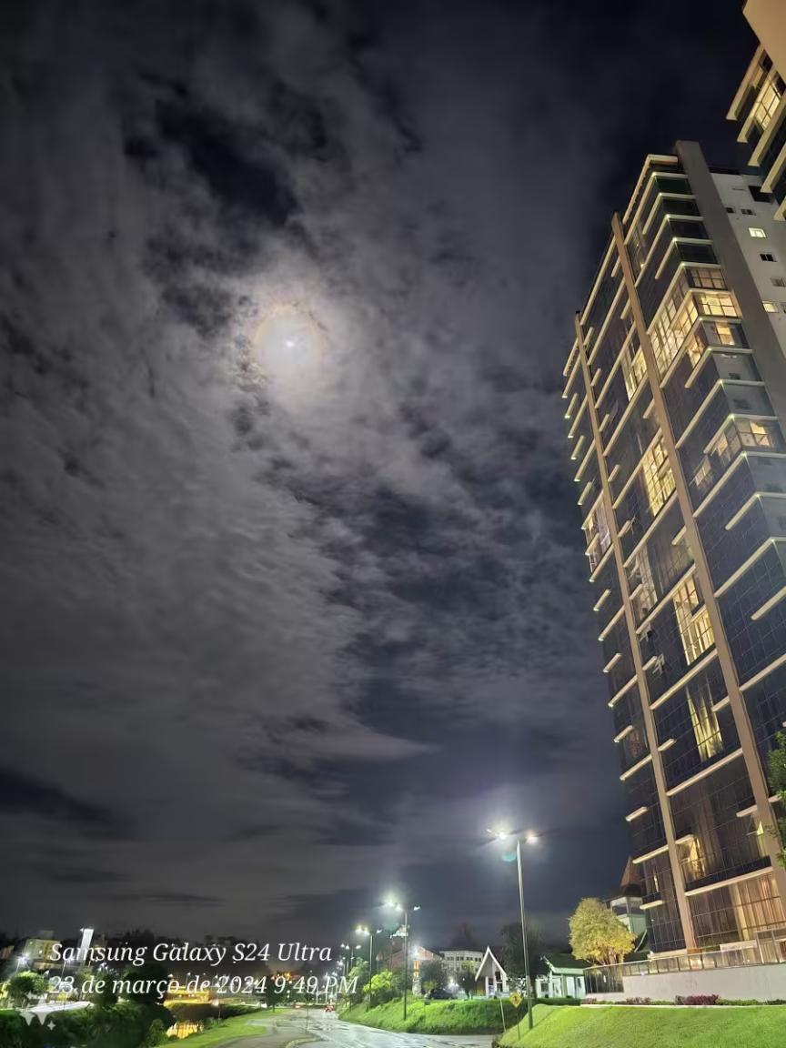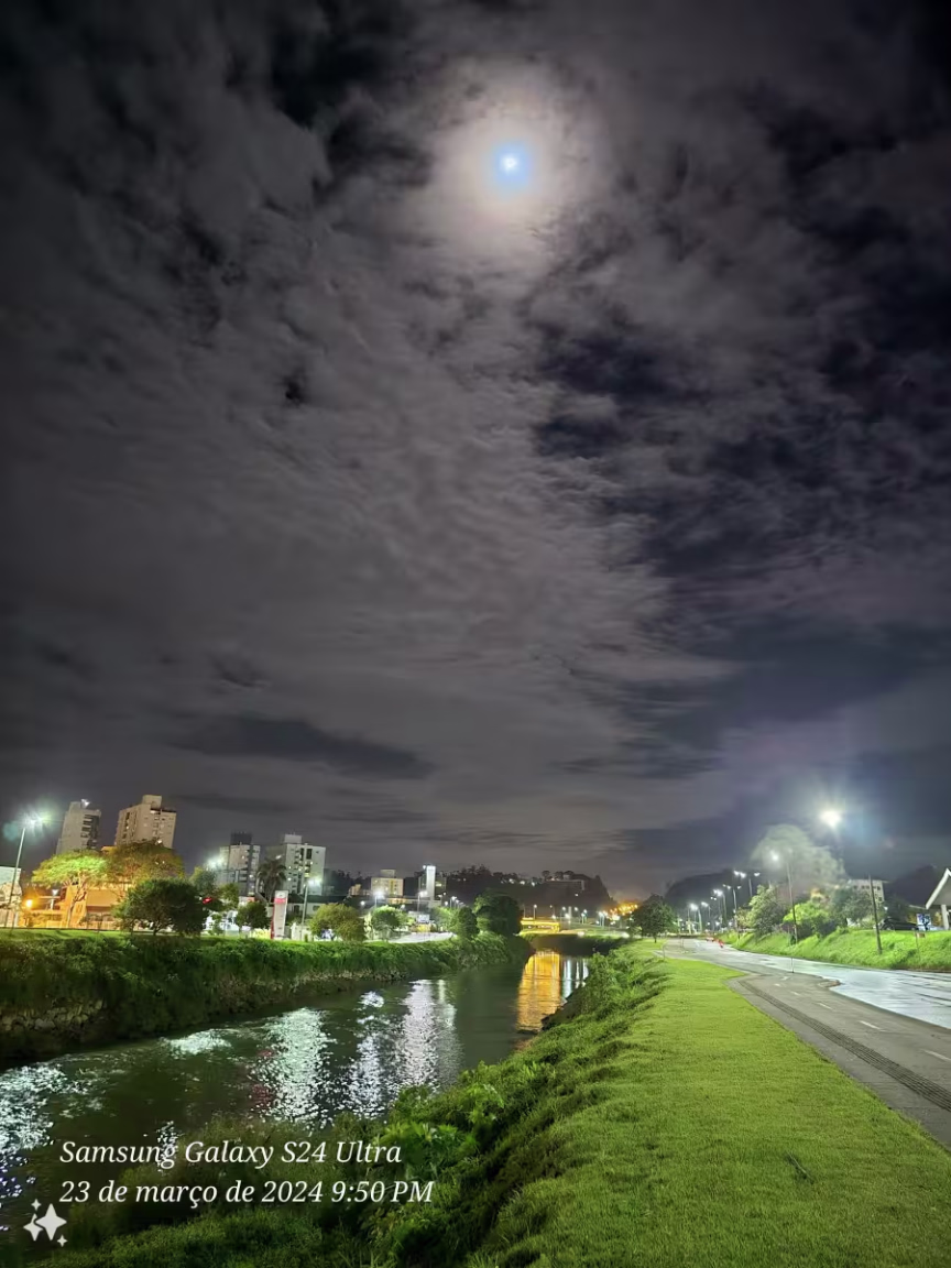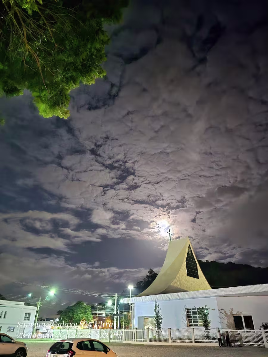 Na noite de sábado, 23, os moradores de Brusque foram agraciados com a visão da lua quase cheia emergindo entre as nuvens, emoldurando o céu da cidade com seu brilho prateado.