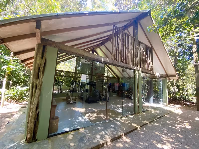 – Academia conta com uma esteira, uma bicicleta, um step. Alguns pesos, aparelho multi articulado, bolas e colchonetes. O básico para quem gosta de nas férias continuar praticando atividade física.