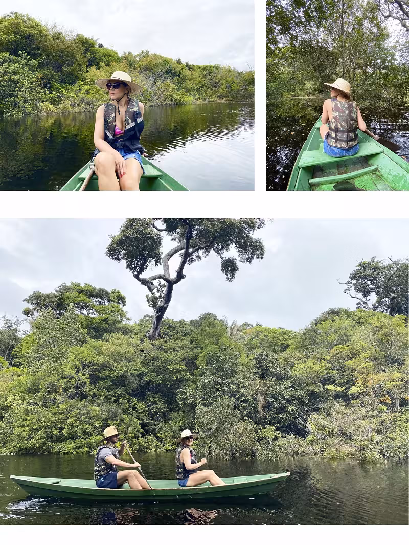 Um dos passeio que mais gostei. Fomos em canoas caboclas de madeira e remamos por entre árvores e rios, foi supertranquilo e leve. Pelo caminho desfrutamos os sons, as paisagens que se abria a cada curva. O Rio Negro parecia uma espelho e refletia as copas das árvores em suas aguas, o que tornava o cenário ainda mais mágico.