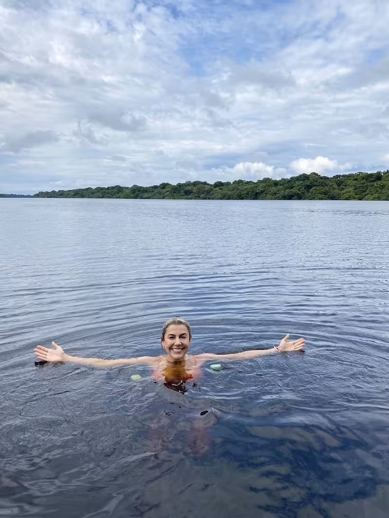 E daí eu pensei né: Céus, eu acabei de pular nessa agua que tem jacarés e cobras, que louca! – Mas não precisa ficar dentro do barco com medo se você for pra lá. Os guias nos explicam que esse animais só saem para caçar a noite.