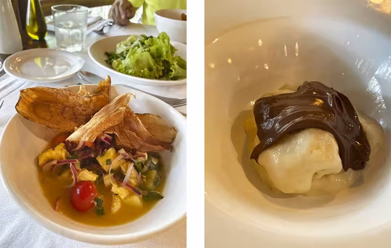 Para o almoço e jantar o cardápio sempre mudava, tinha pratos típicos da região e os "confort food", que são comidas mais simples, exemplo: carne, arroz e fritas.