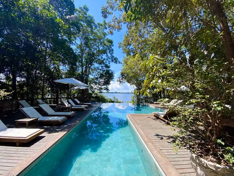 Anavilhanas Jungle Lodge, escolhi esse hotel por ter todo um conforto em meio a floresta bem como as refeições inclusas e os passeios. Fui surpreendida positivamente em todos os aspectos: Acomodações, gastronomia, acolhimento, serviços em geral, guias, estrutura, eu amei tudo.